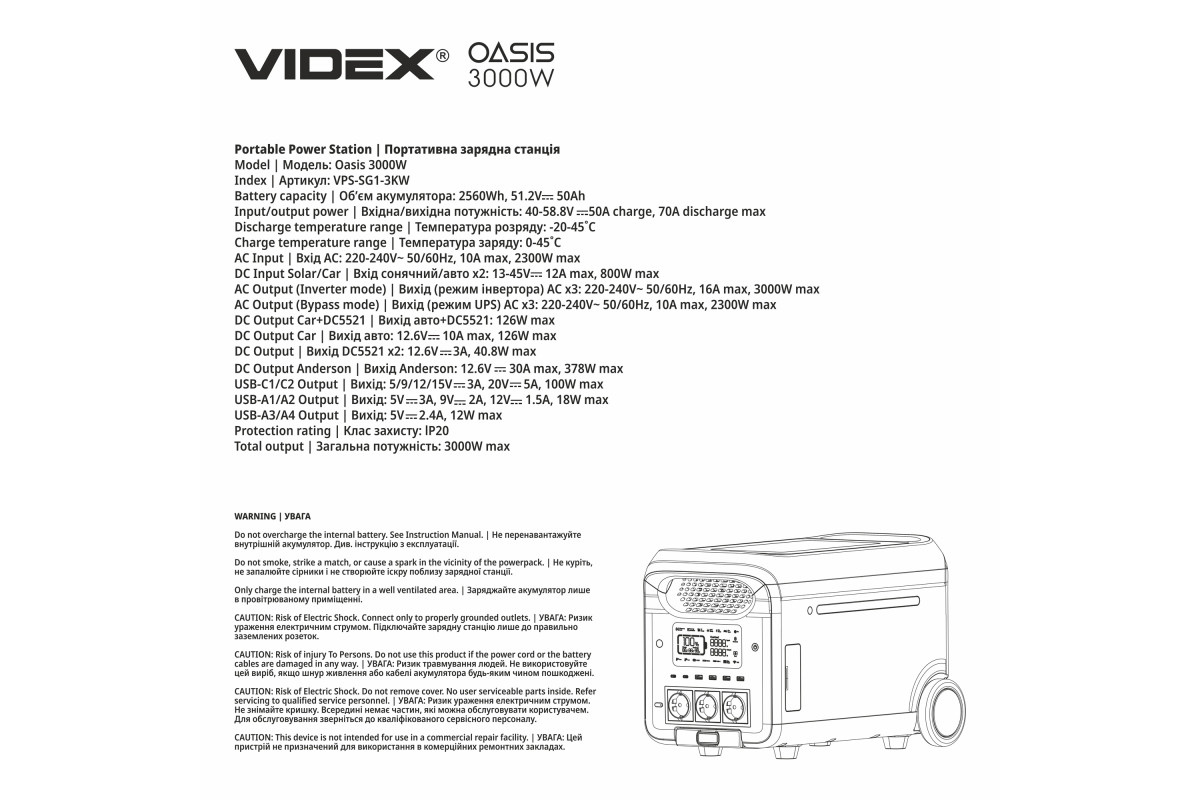 Portable charging station VIDEX OASIS 3000W 2560Wh (VPS-SG1-3KW)
