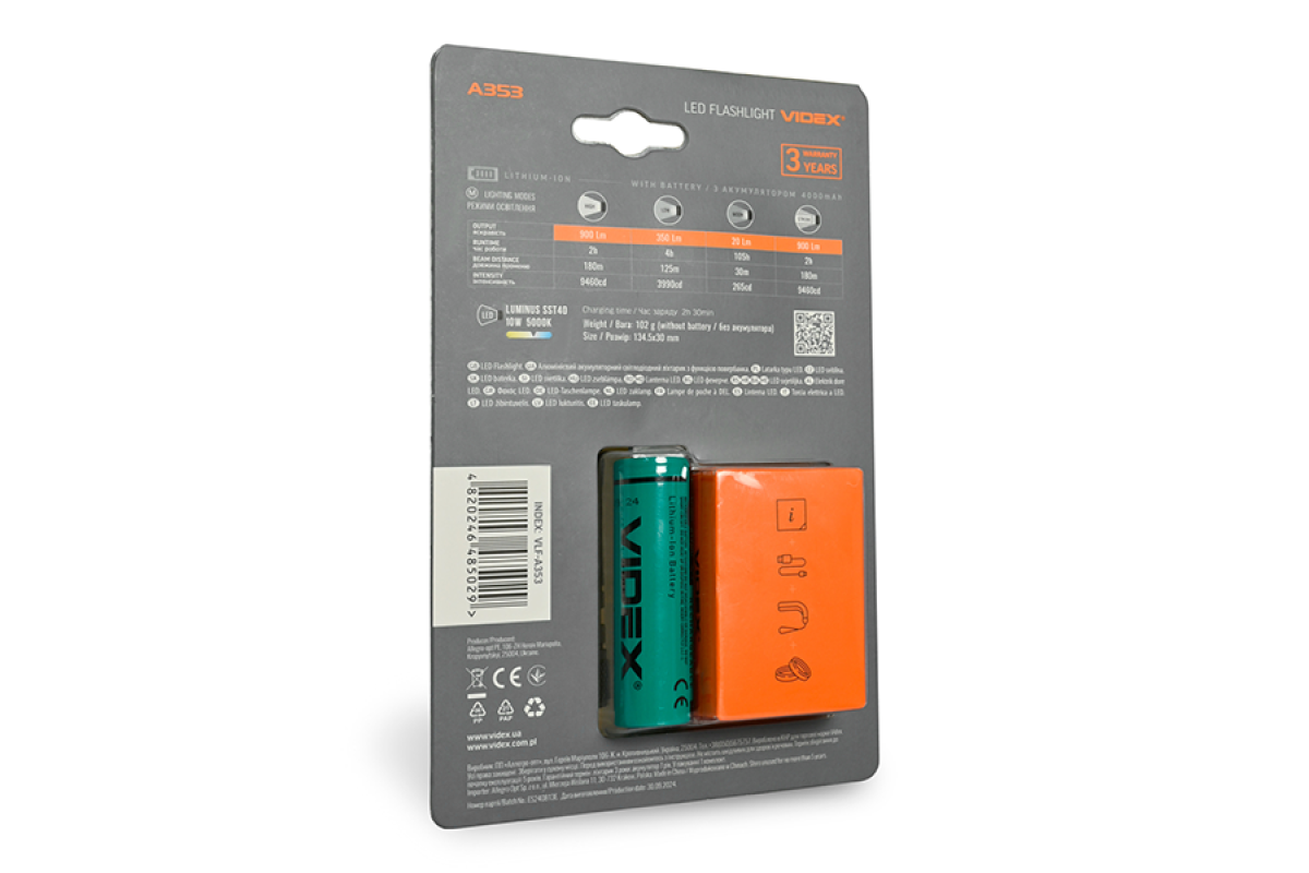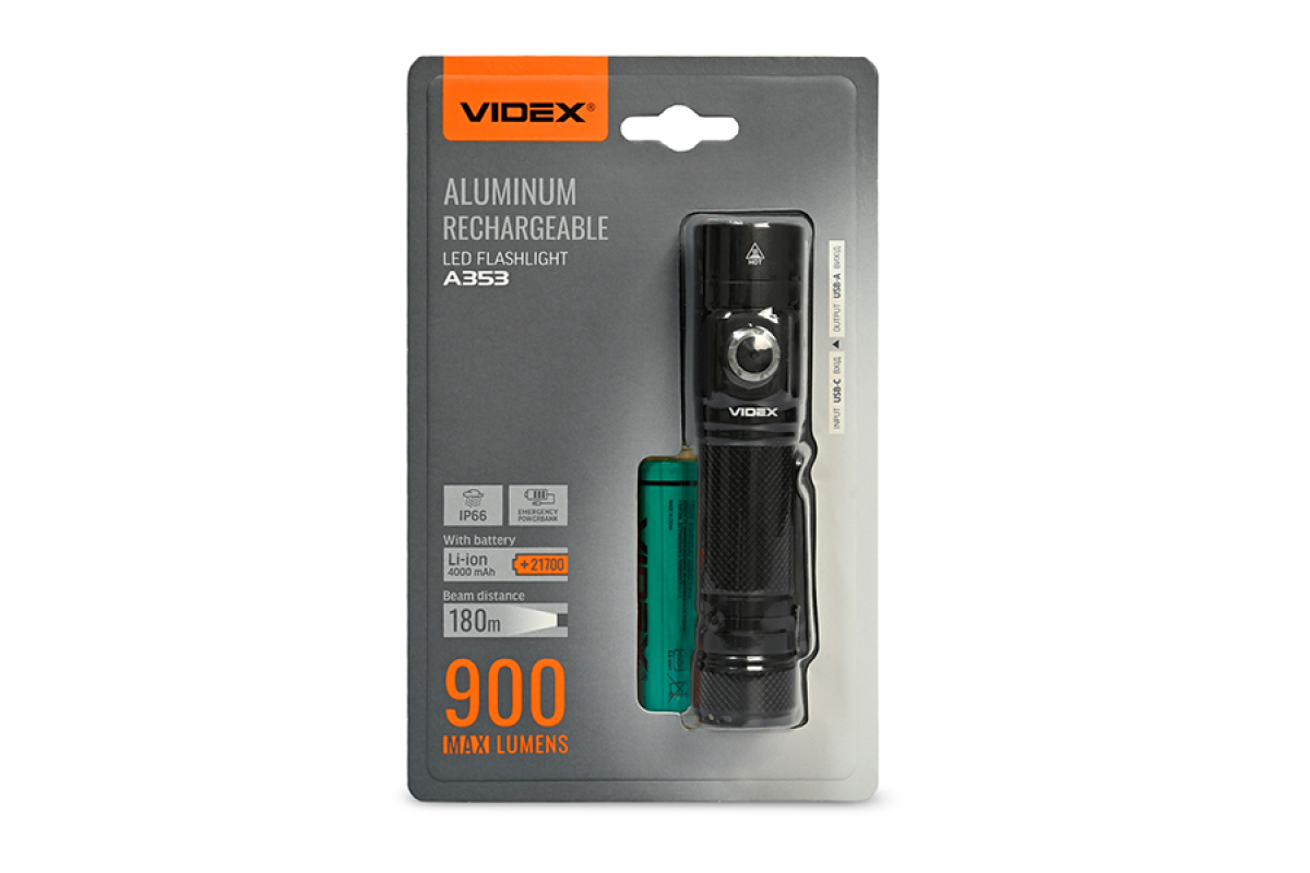 Portable LED flashlight VLF-A353 900Lm 5000K Videx