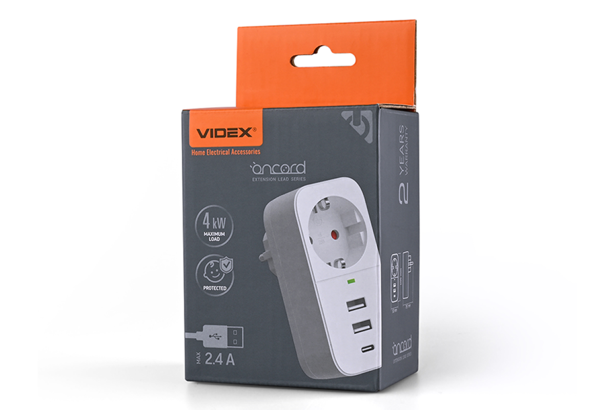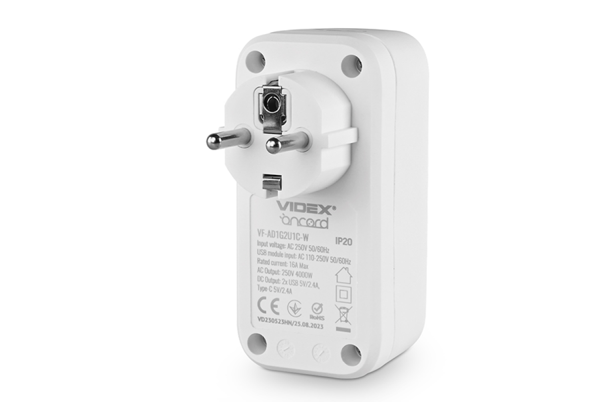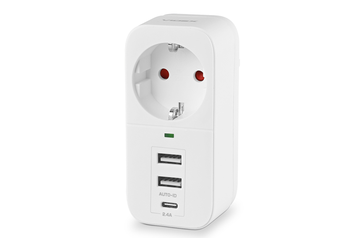 Power adapter 1p 2.4A 2USB Type-C with grounding White ONCORD (VF-AD1G2U1C-W) VIDEX