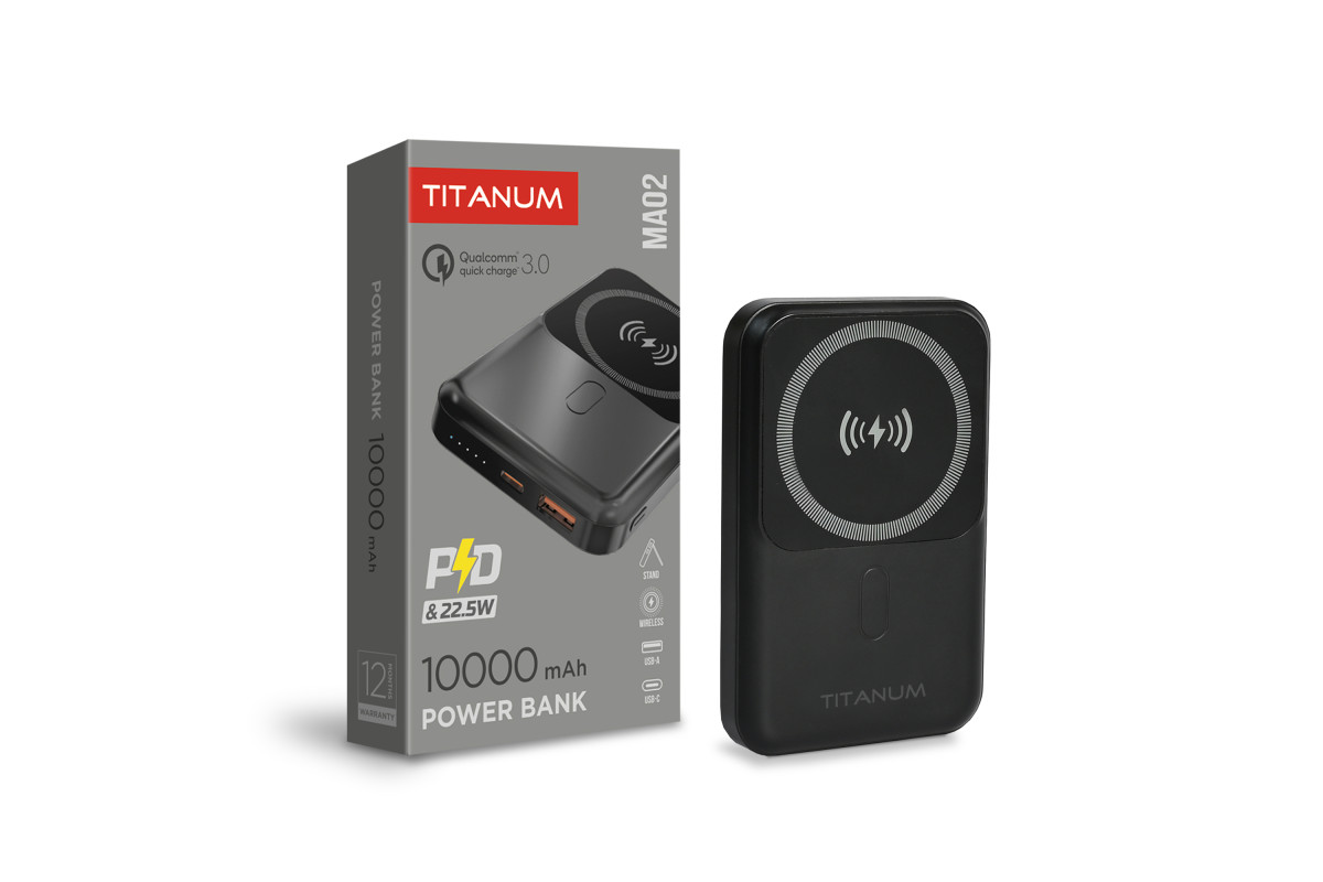 Power bank with wireless charging 10000mAh TITANUM MA02 22.5W Black