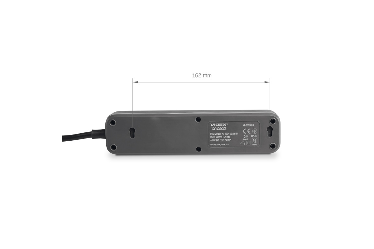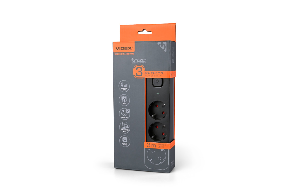 Power extension cord 3p 3m 1.5mm w/o button Black ONCORD (VF-PD33G-B) VIDEX