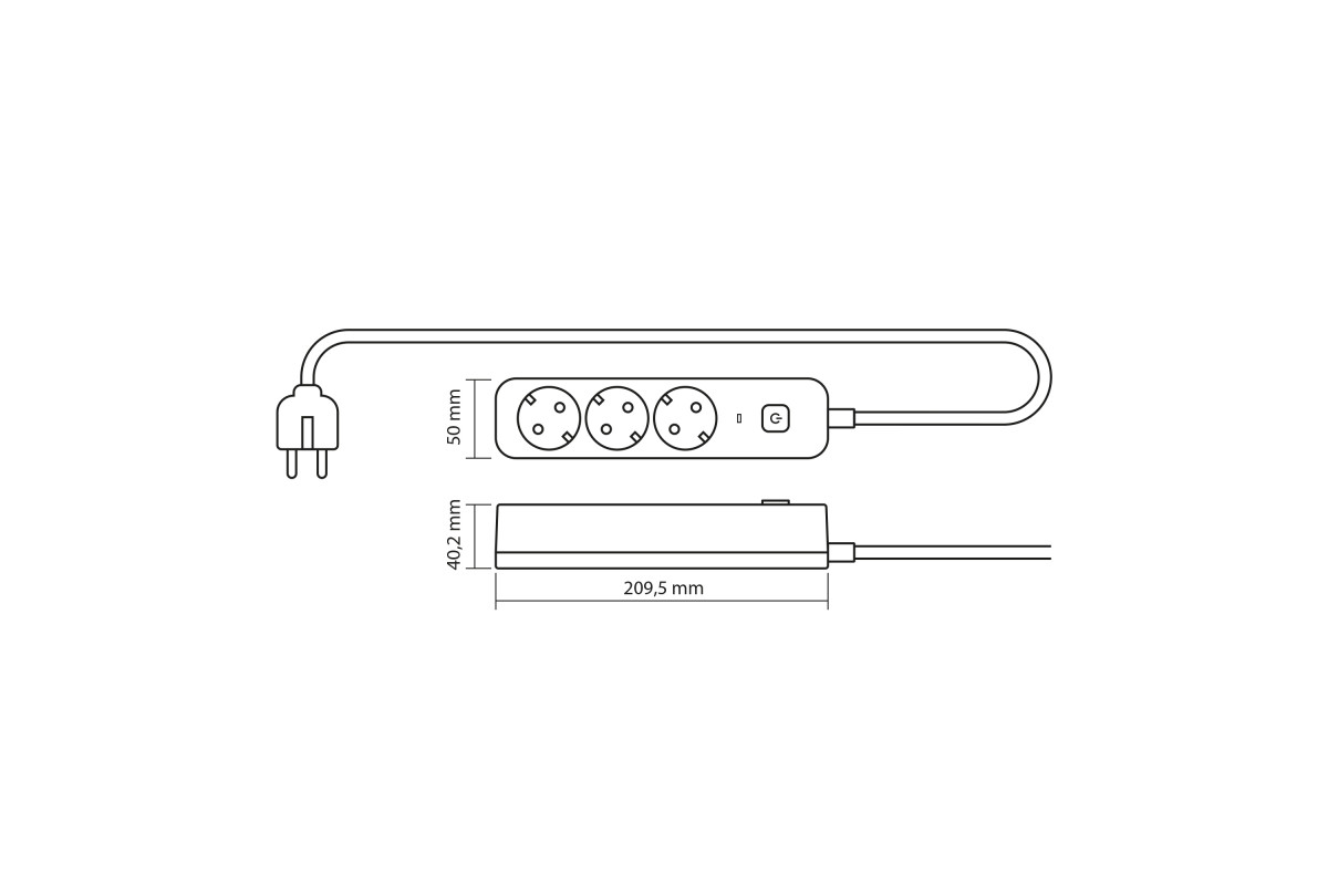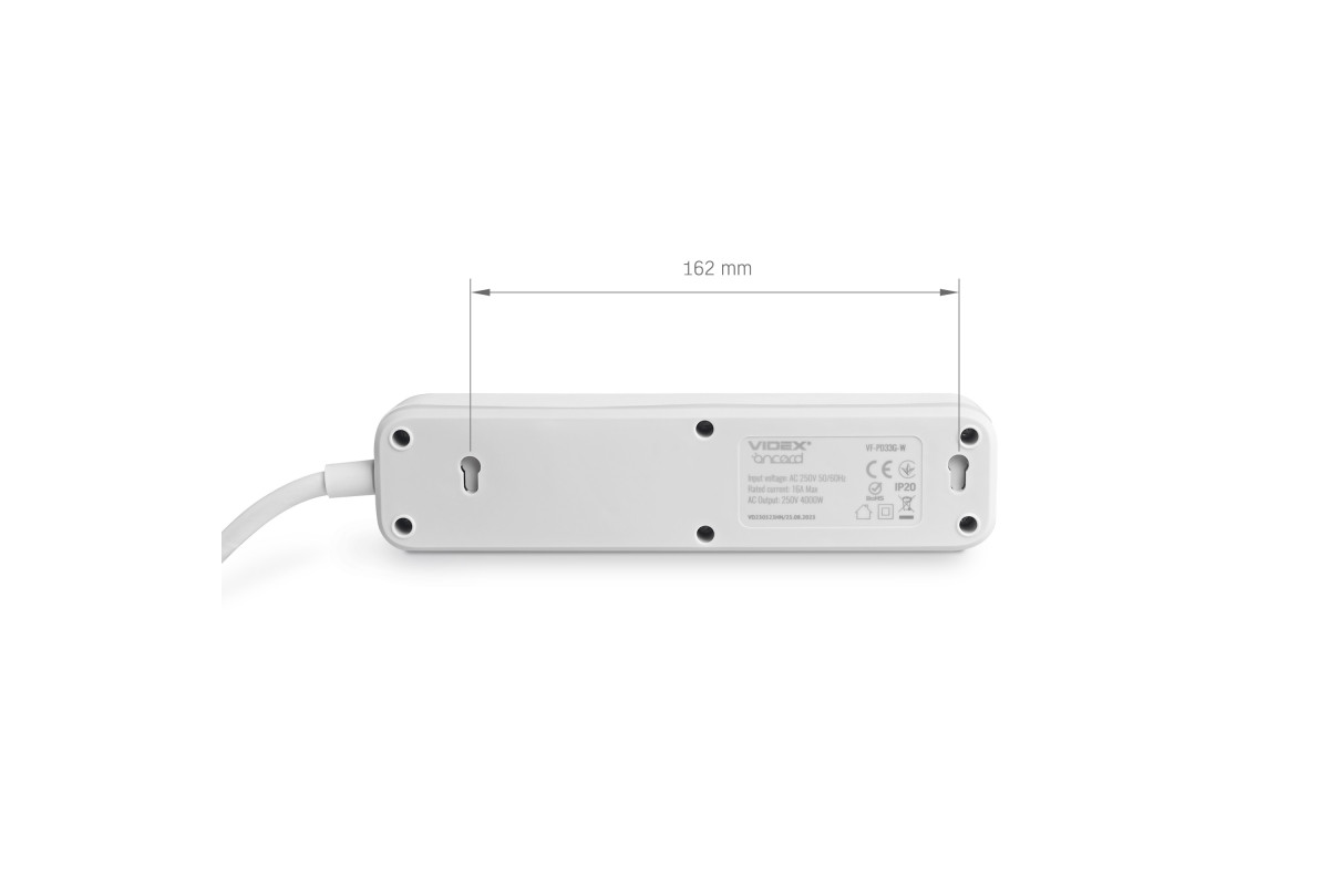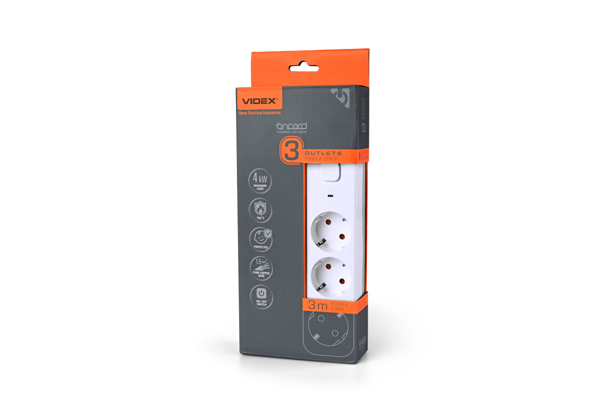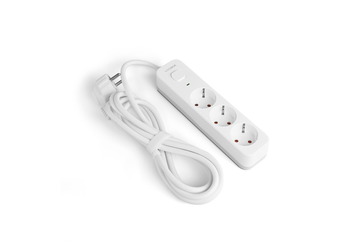 Power extension cord 3p 3m 1.5mm w/o button White ONCORD (VF-PD33G-W) VIDEX