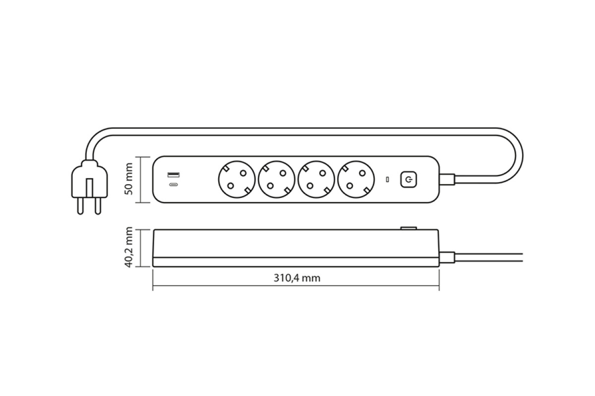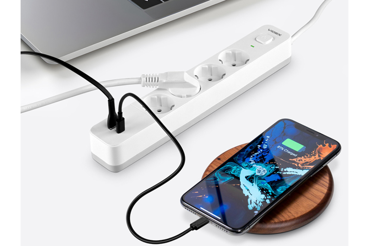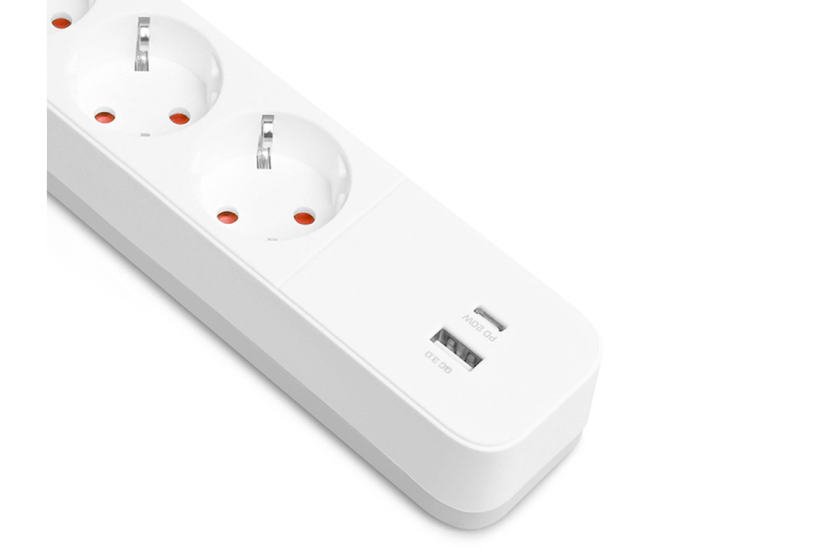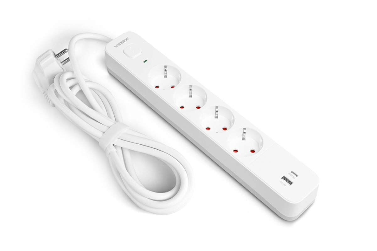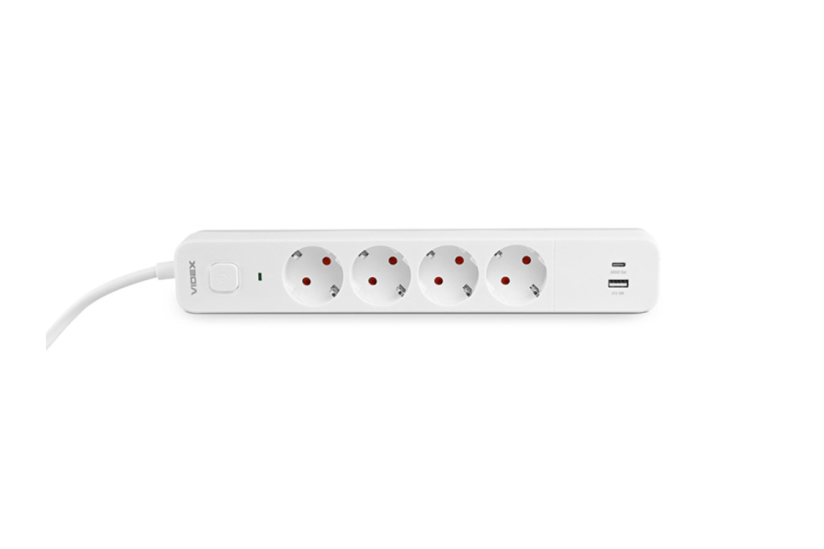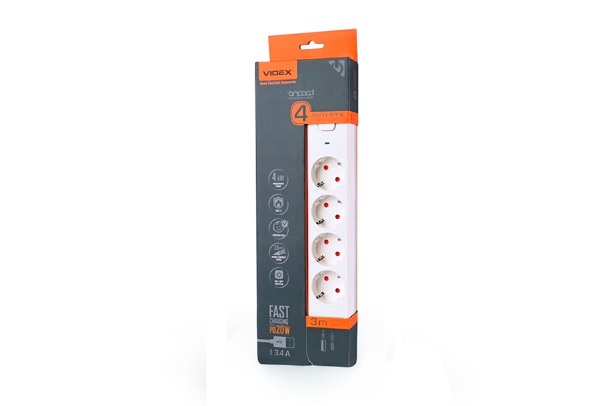 Power extension cord 4p 3m 1.5mm 3.4A USB(QC) USB-C(PD20W) w/o button White ONCORD VIDEX