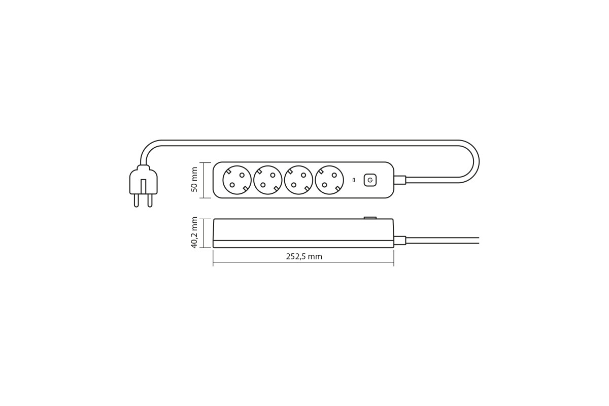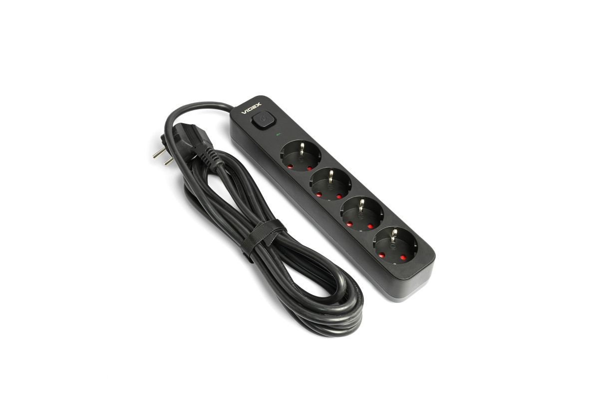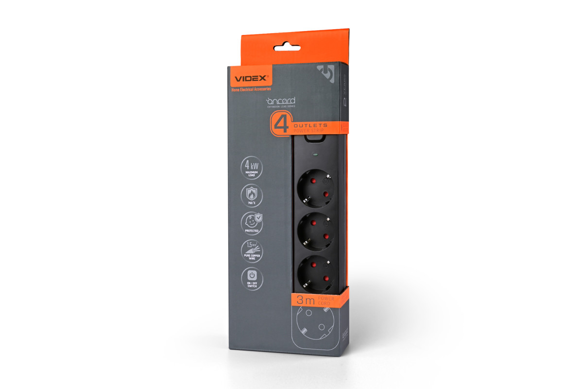 Power extension cord 4p 3m 1.5mm w/c and button Black ONCORD (VF-PD43G-B) VIDEX
