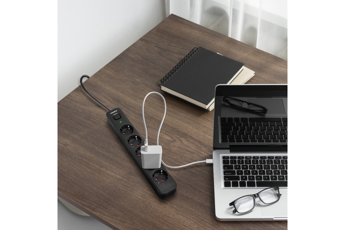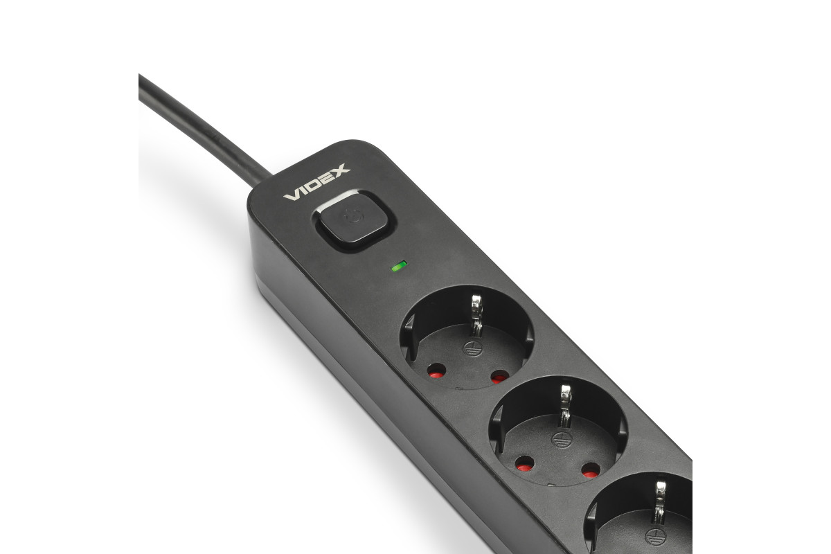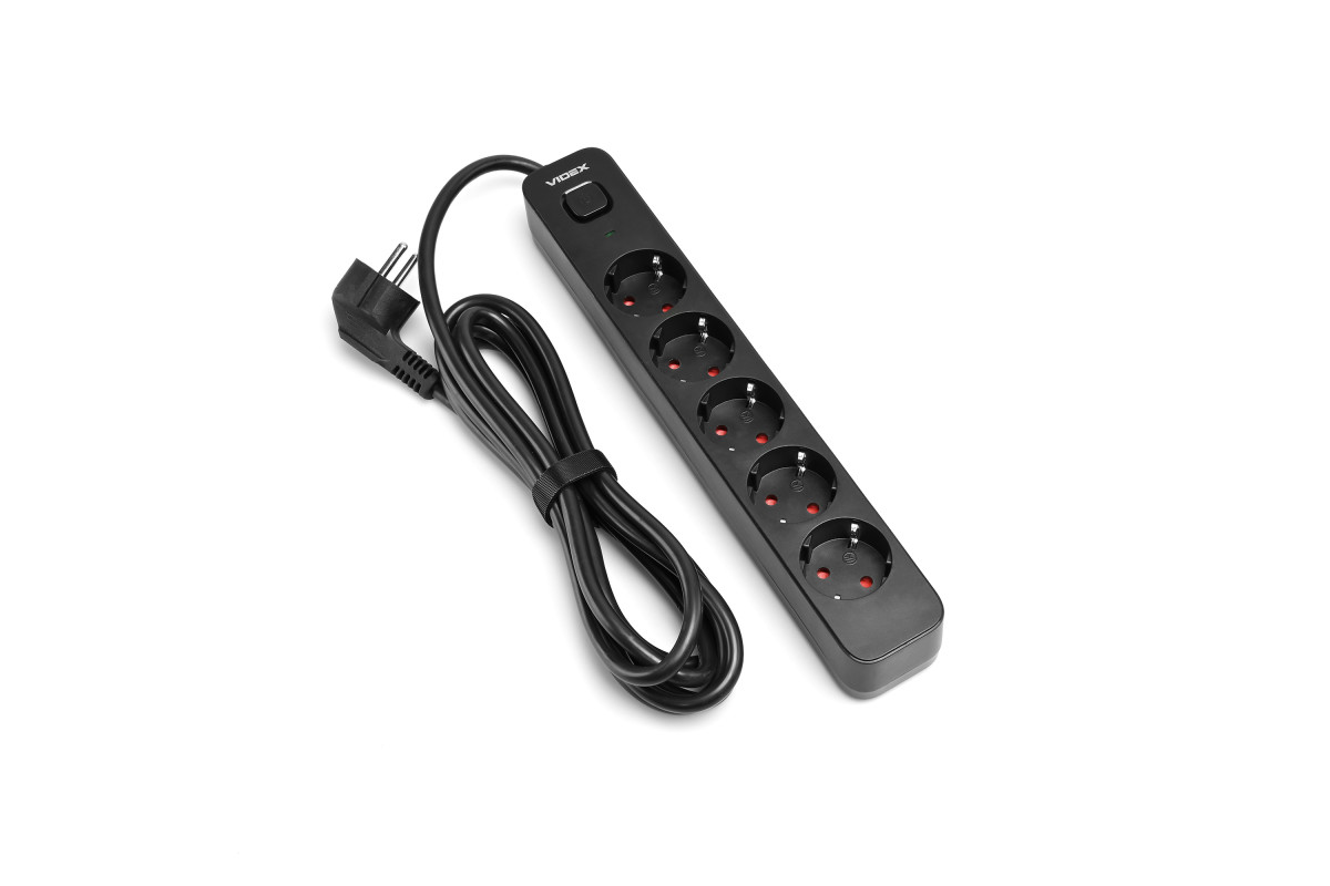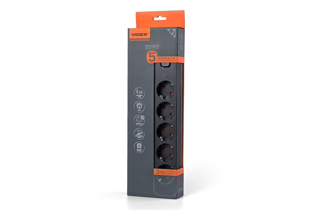 Power extension cord 5p 3m 1.5mm w/c and button Black ONCORD (VF-PD53G-B) VIDEX