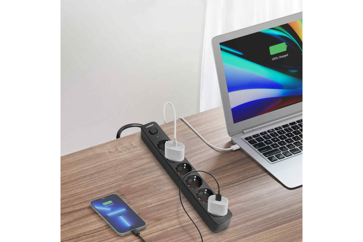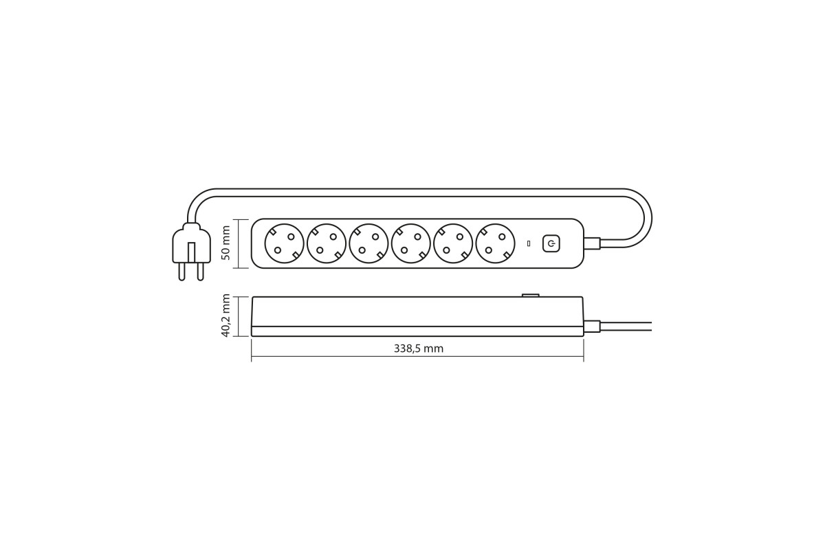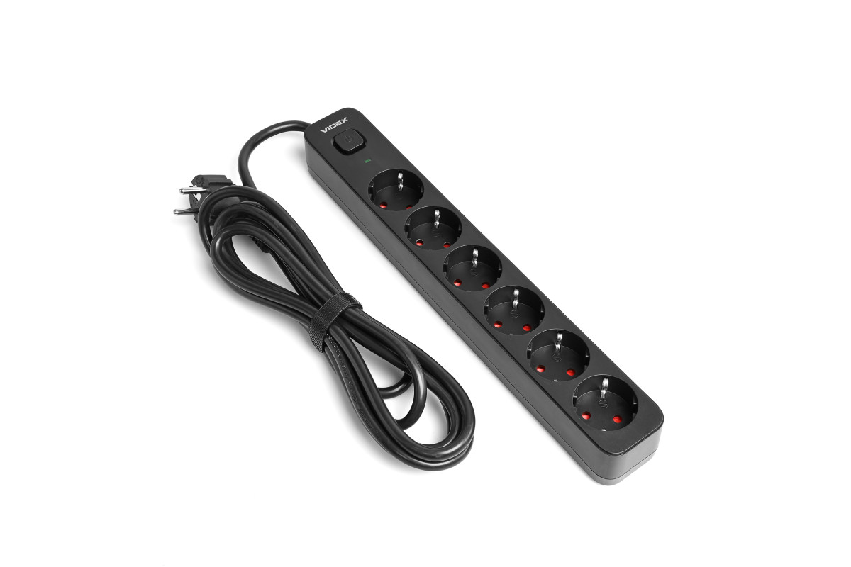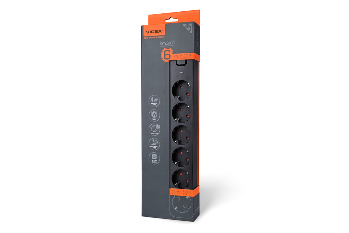 Power extension cord 6p 3m 1.5mm w/c and button Black ONCORD (VF-PD63G-B) VIDEX