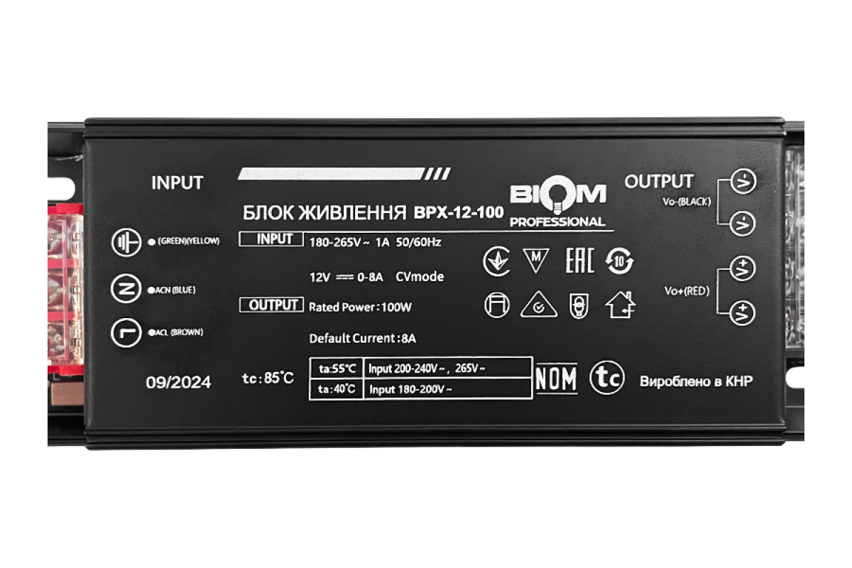Power supply 100W-IP20 12V BPX-100 8.3A BIOM Professional