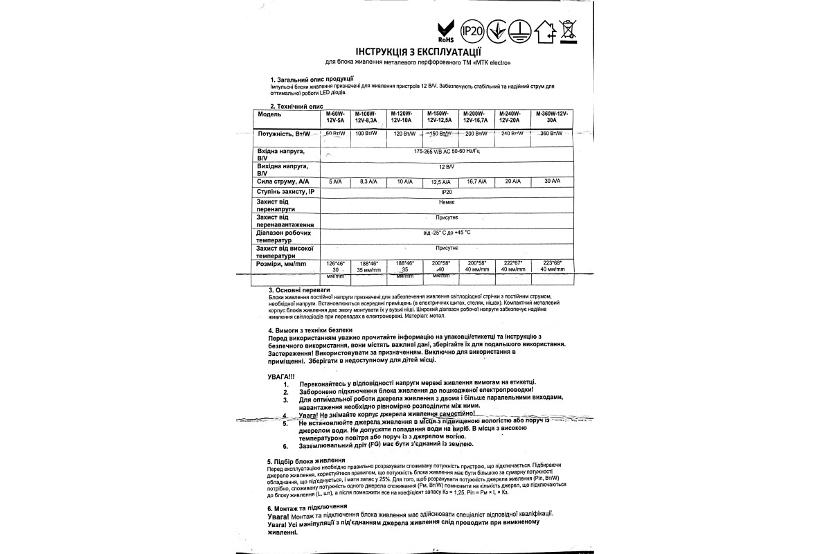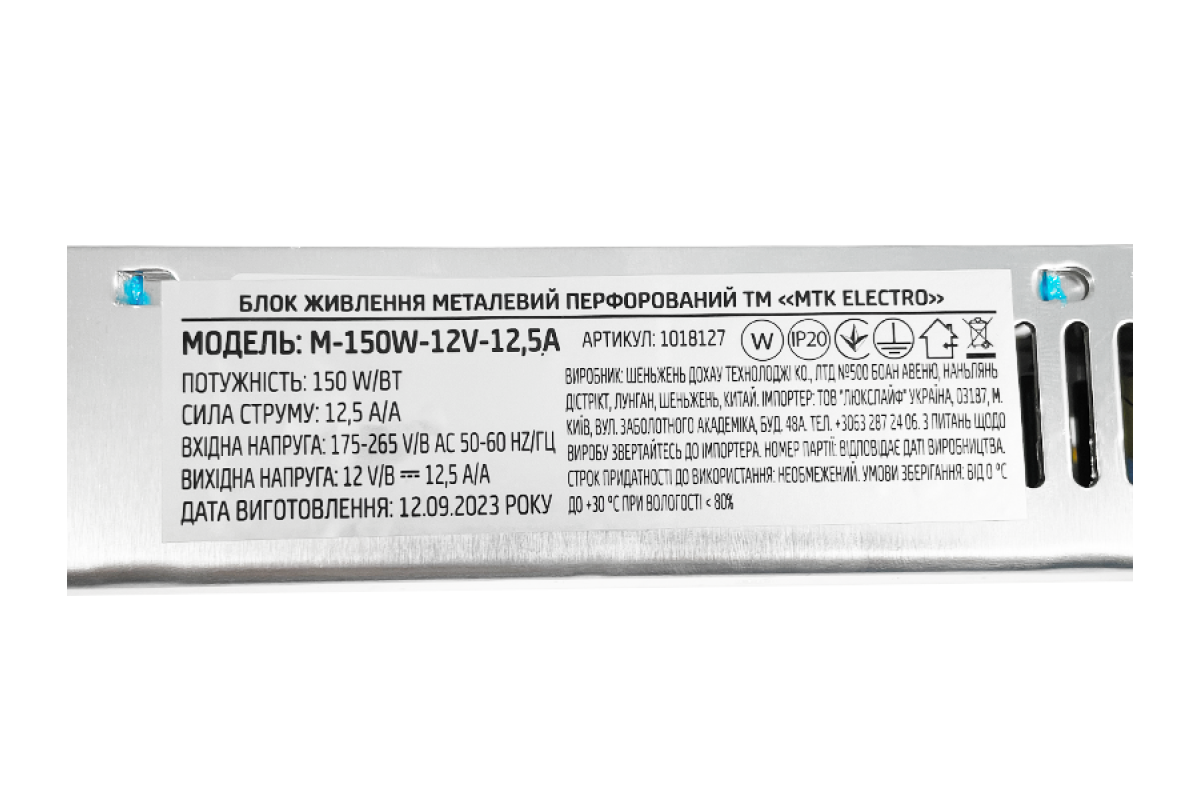 Power supply 150W 12.5A 12V IP20 series M (M-150W-12V-12.5A) (1018127) MTK