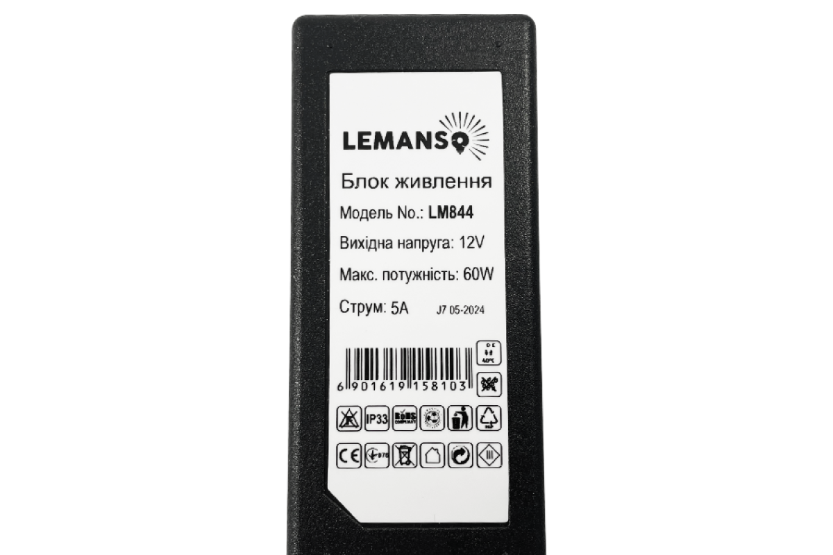 Power supply 60W-IP20 plastic, 12V/LM844 119*53*32mm Lemanso