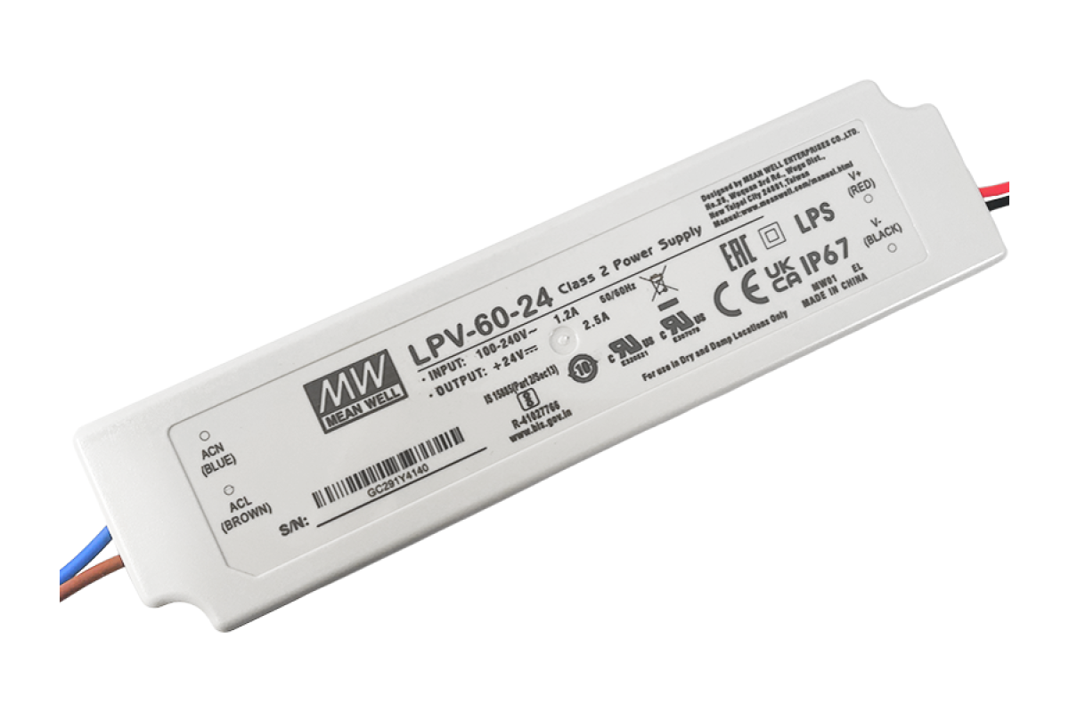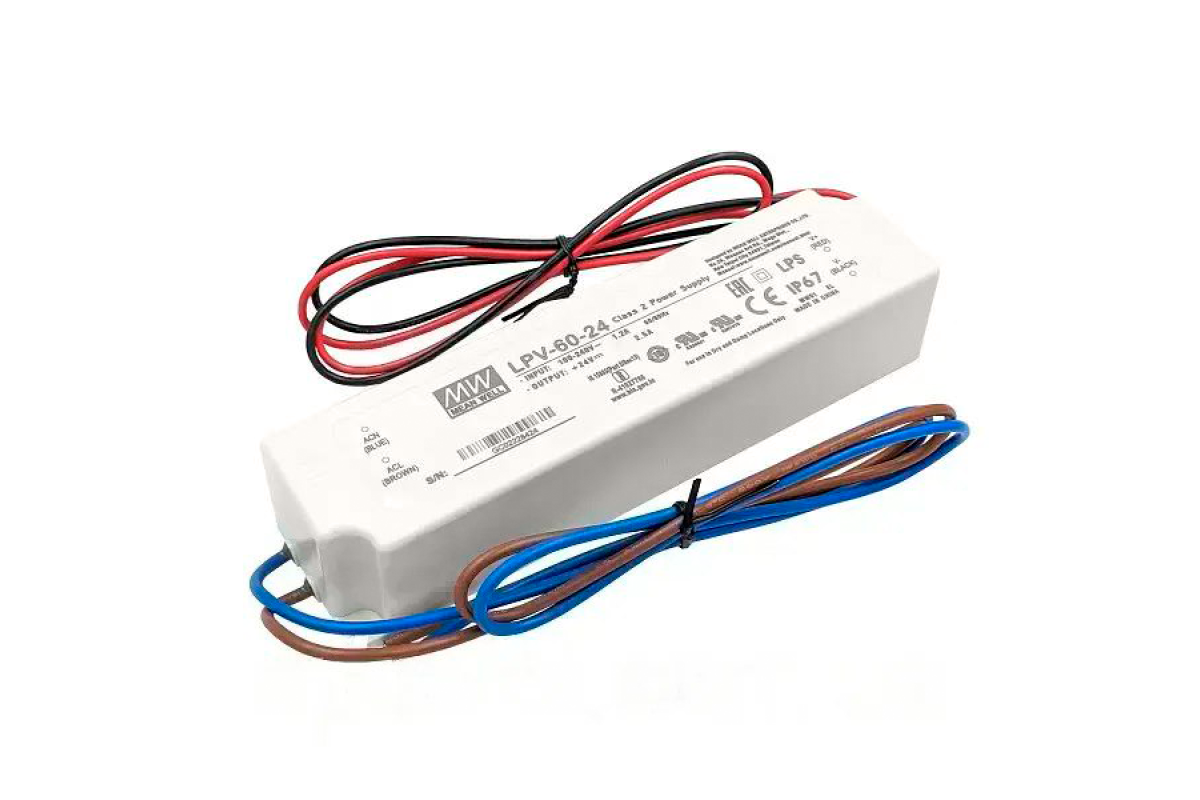 Power supply 60W IP67 24V 2 years warranty LPV60 MEAN WELL