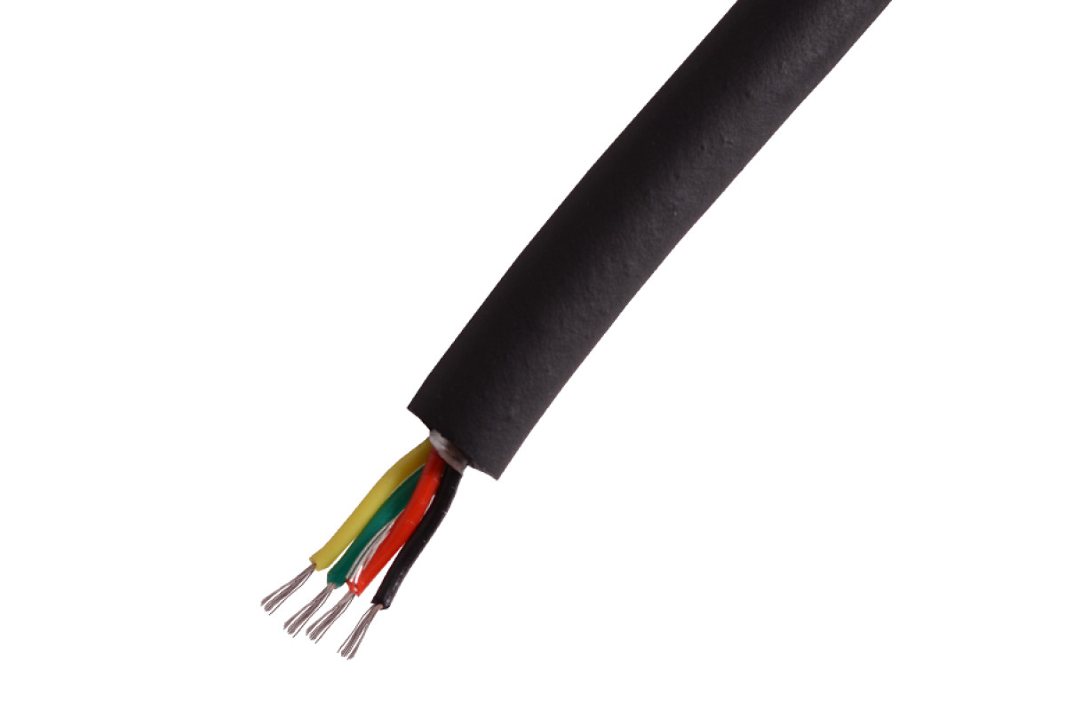 PVC cable 4 cores in a screen, round, tinned copper, diameter 5mm, black