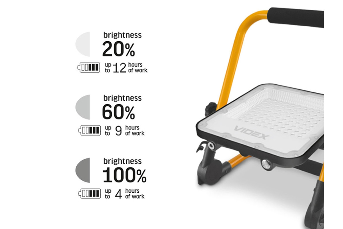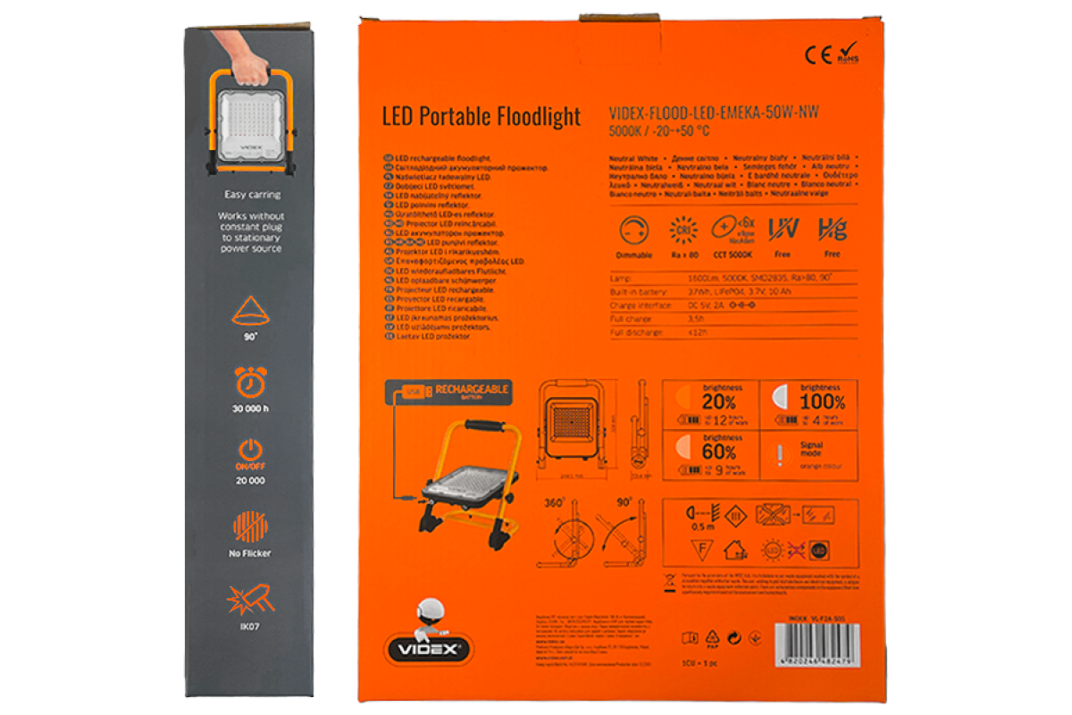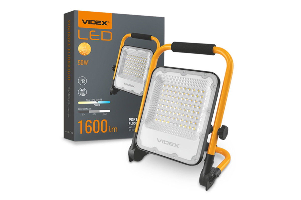 Rechargeable LED Floodlight F2A 50W 3.2V 5000K IP65 (VL-F2A-505) PREMIUM VIDEX
