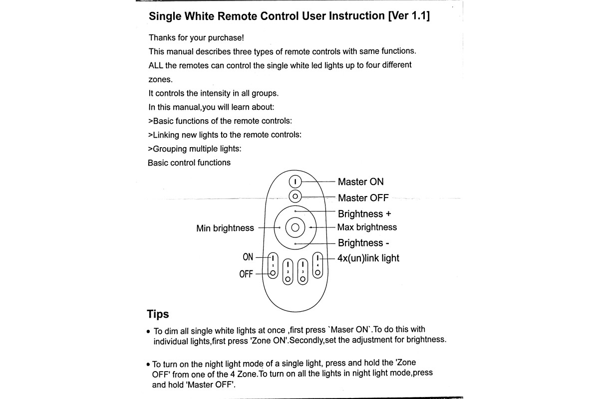 Remote control 4 zone - radio 10 buttons for dimmer 8A (4A/channel, 4zone) 2837 LEDUA