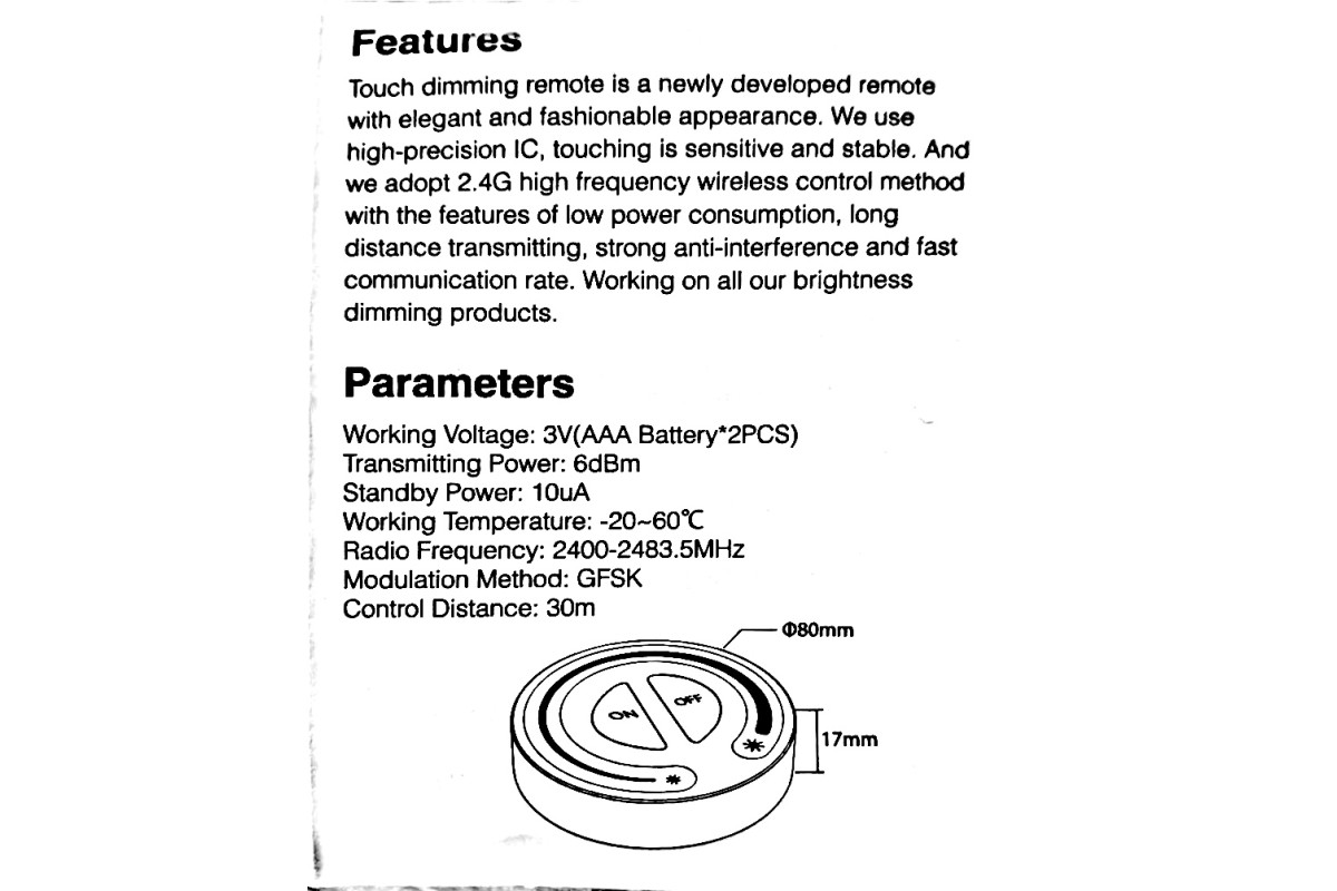 Remote control for dimmer (Mi-Light / MiBoxer) radio 4 buttons #160