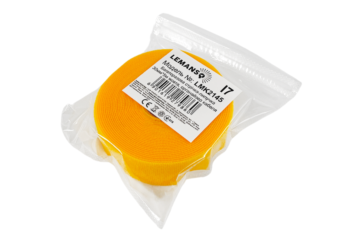Reusable Velcro tape 30mm*5m yellow, cable organizer LMK2145 Lemansault