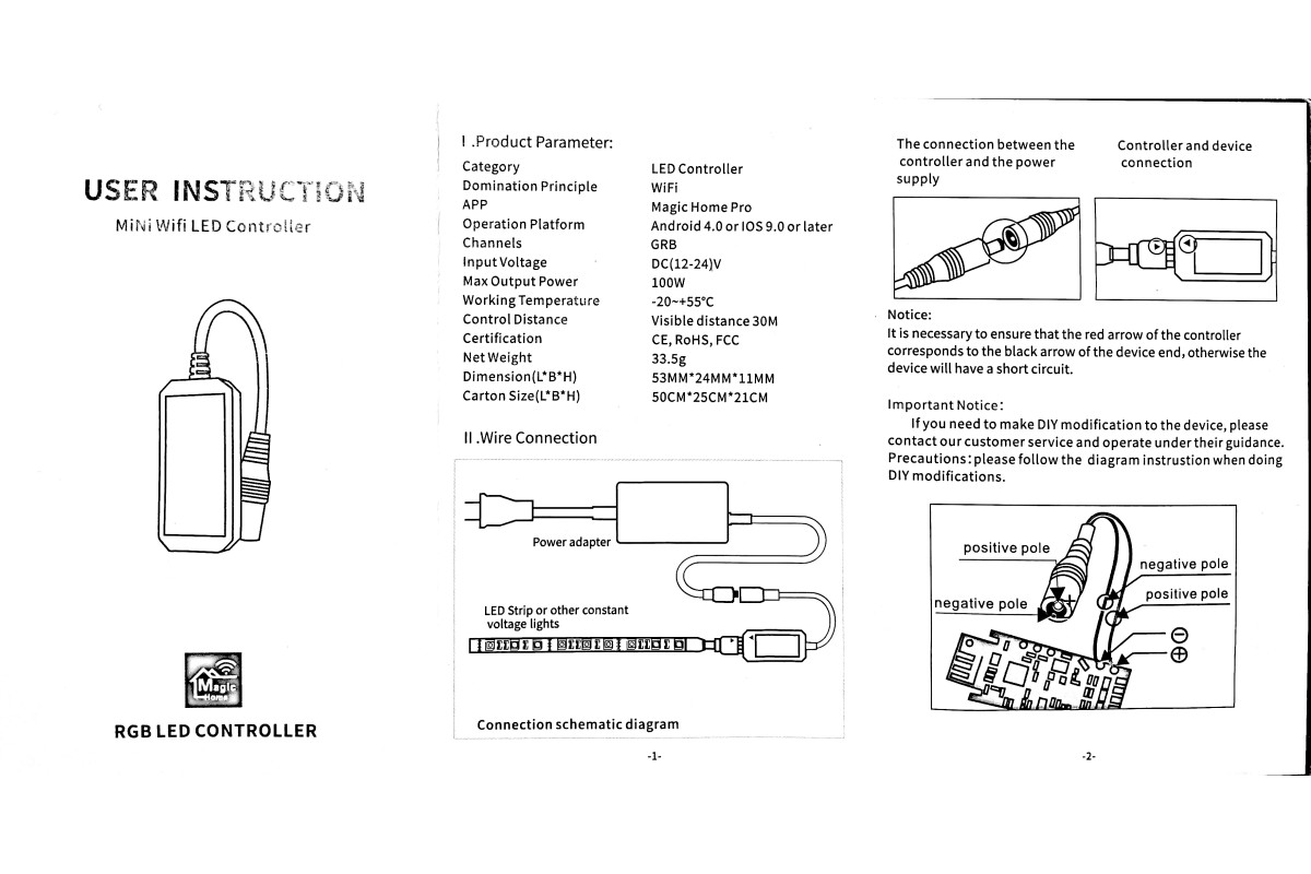 RGB controller 12A 12-24V mini Wi-Fi LEDUA