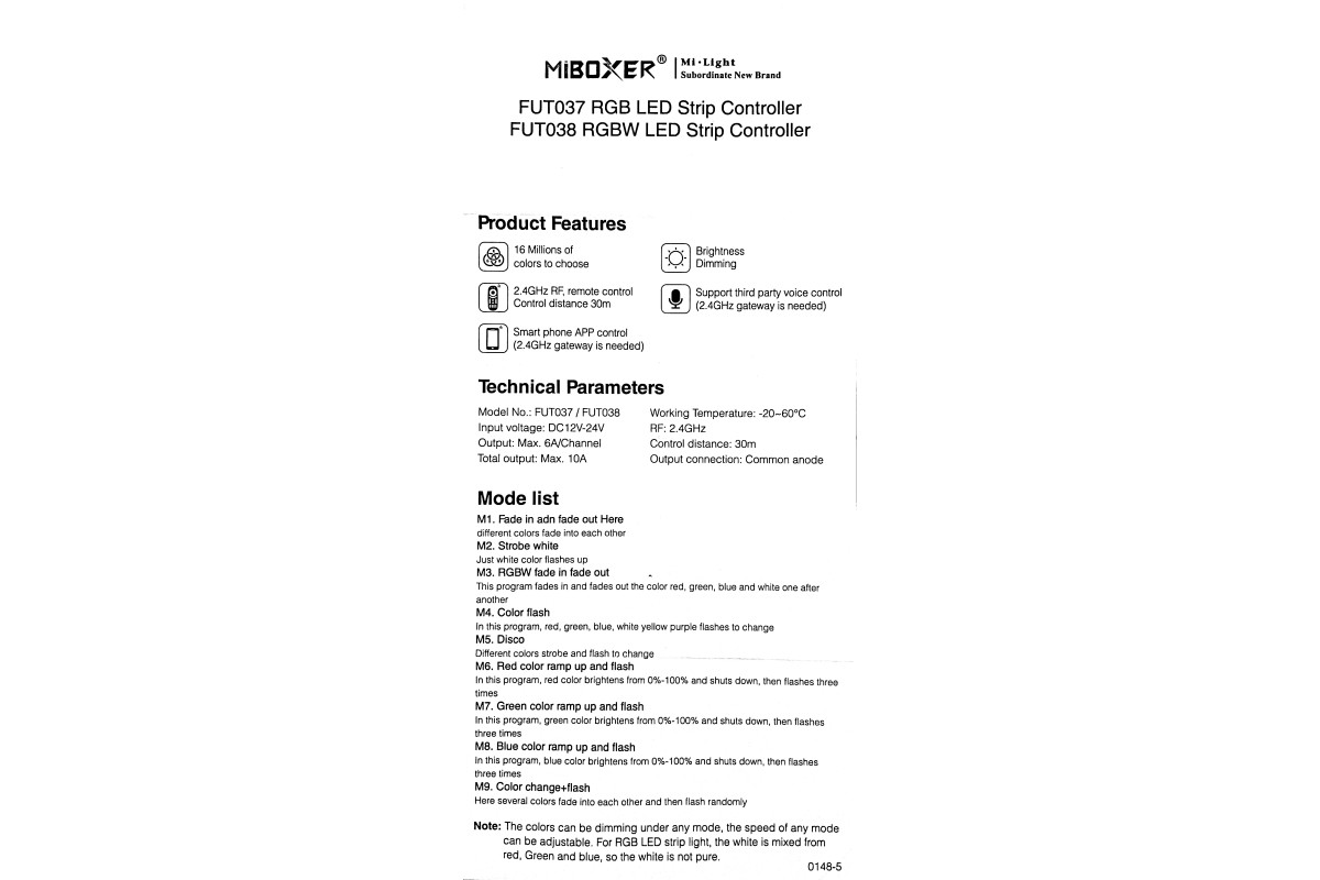 RGB controller Mi-light 12-24V (6A/channel, 4 zone) LEDUA