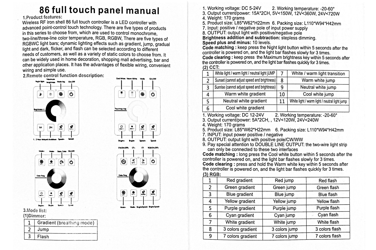 RGBW controller DC5-24V (10A*4channels) white C-40-Touch-V2 OEM