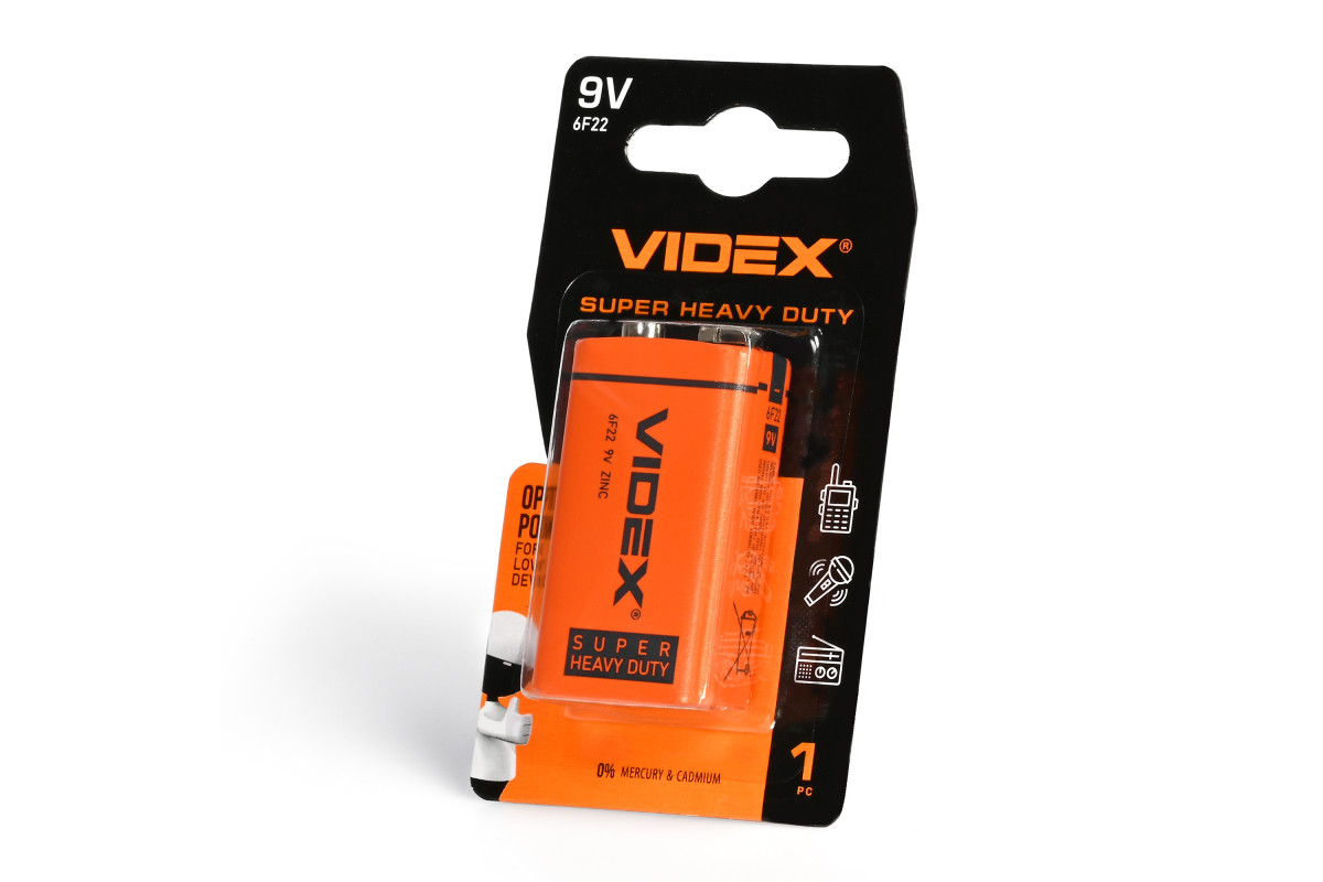 Salt battery VIDEX 6F22/9V (Krona) 1pc SMALL BLISTER