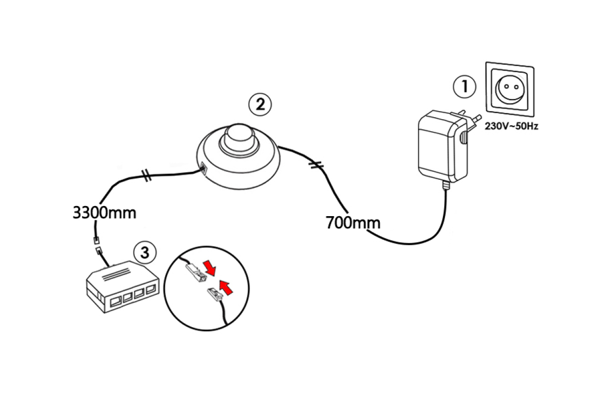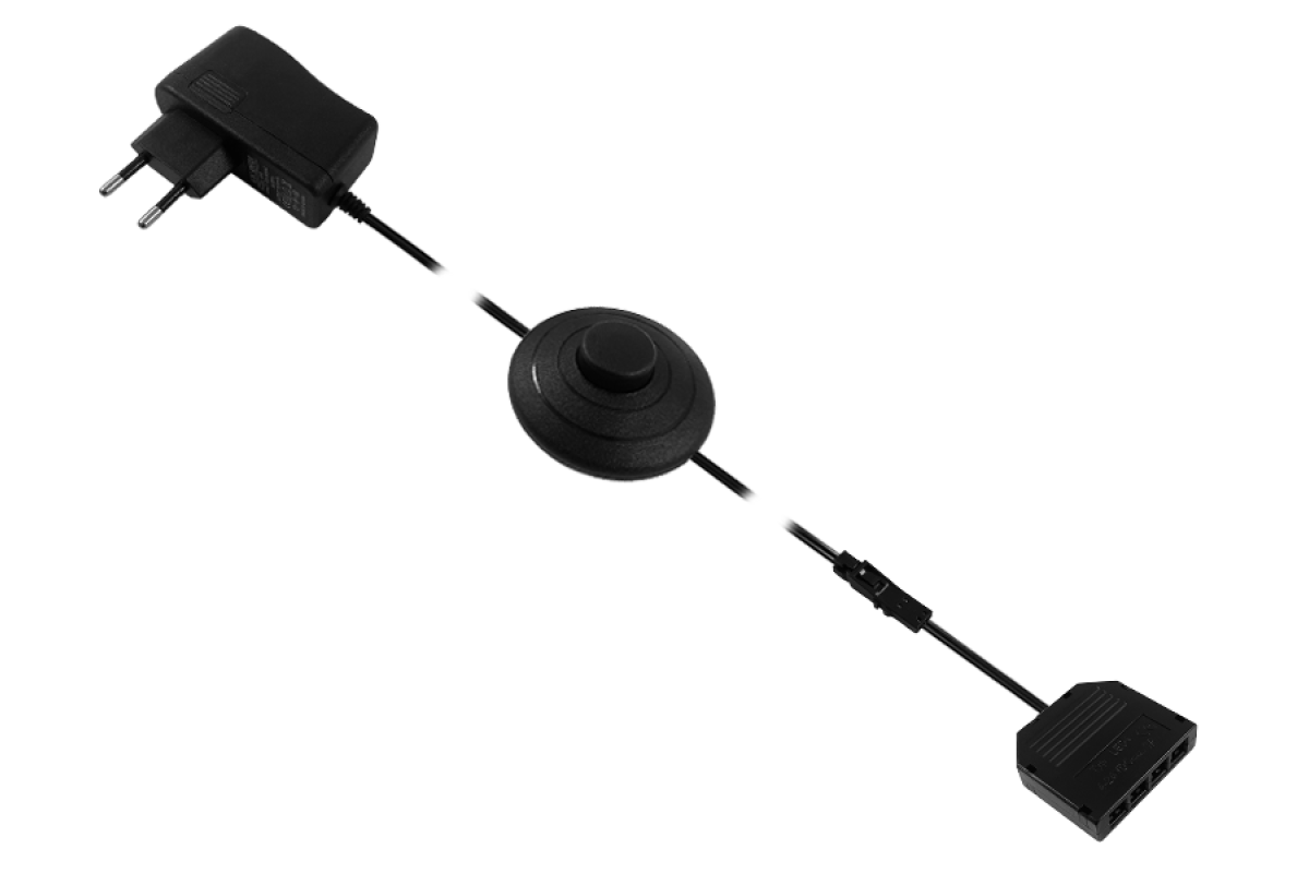 Set 3w driver+foot switch+junction box 4 outputs 700mm+3300mm wire, black color 12V LEDUA