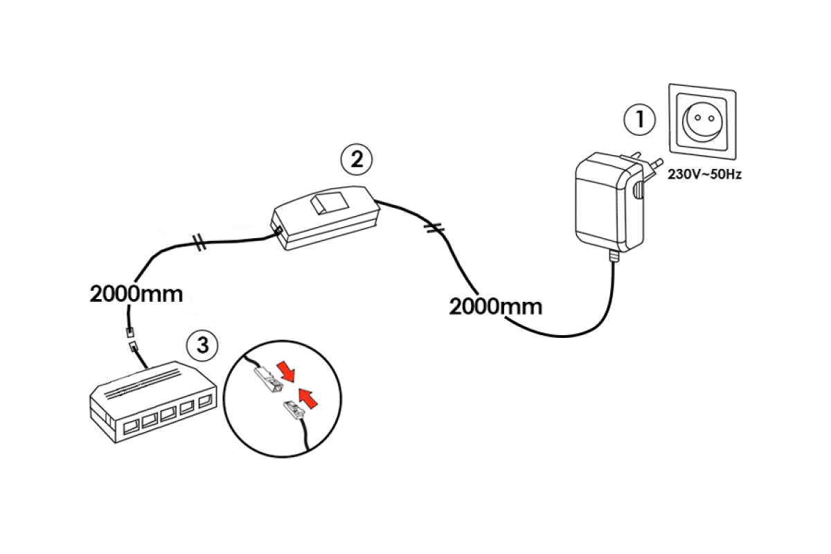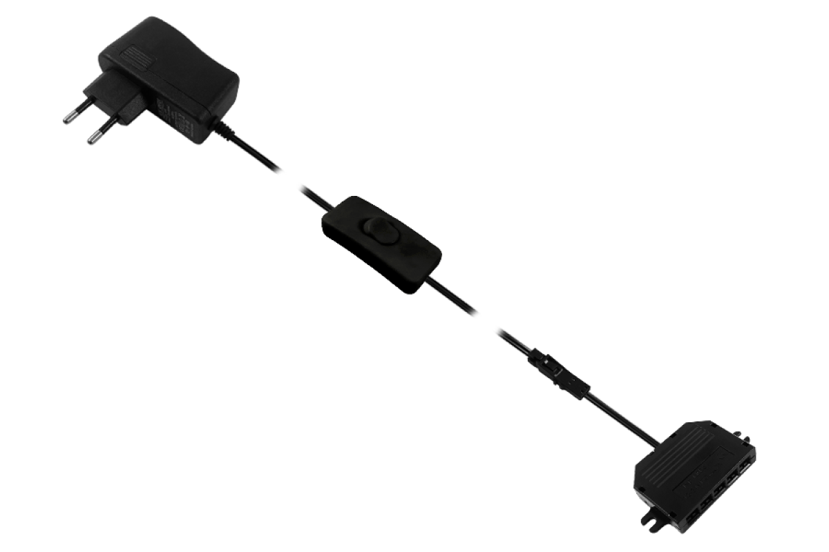 Set driver 12W + manual switch + junction box 5 outputs, black 12V LEDUA