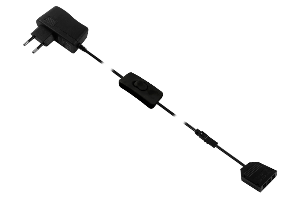 Set driver 24W + manual switch + junction box 3 outputs, black 12V LEDUA