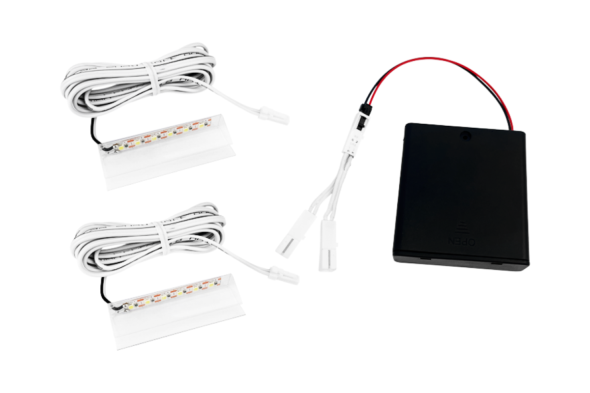 Set LED plastic clips for lighting glass shelves 6 cm, 2pcs, AAx4 pcs (without batteries) 6500K white wire LEDUA