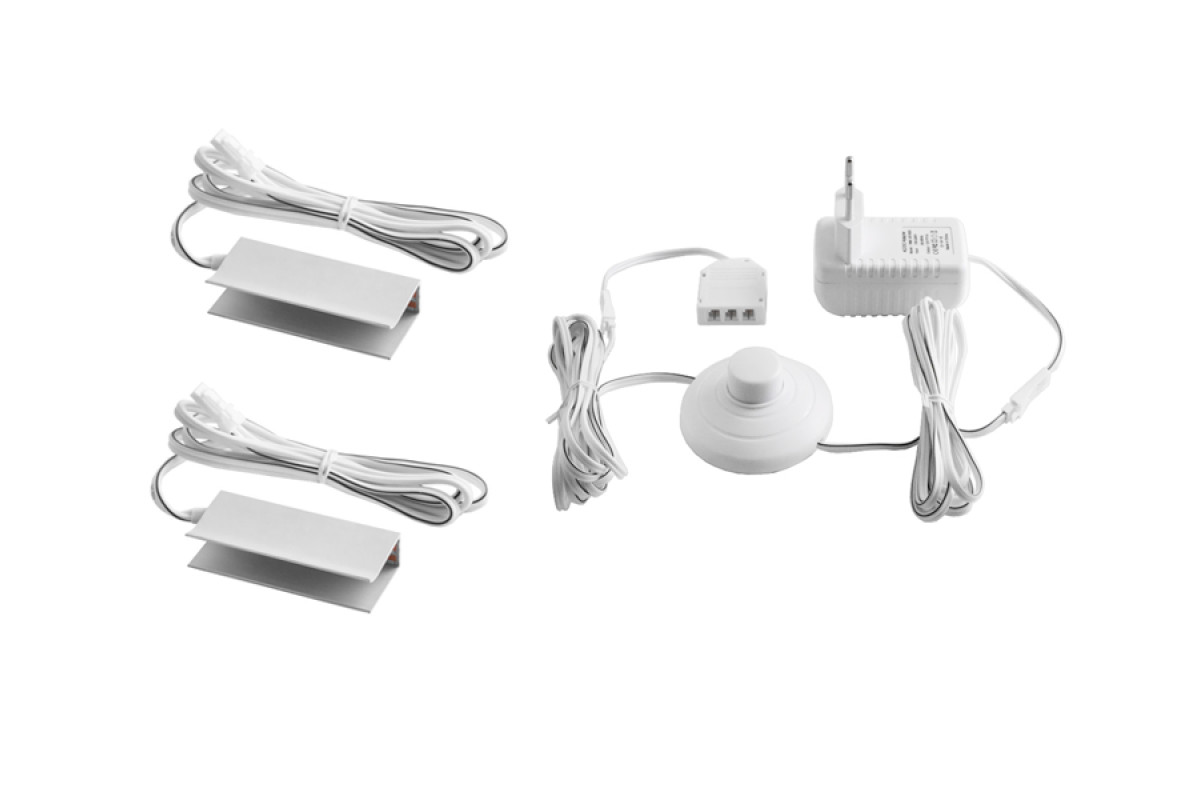 Set of aluminum LED clips for glass shelf lights with foot switch 2pcs 220V blue light, white wire LEDUA