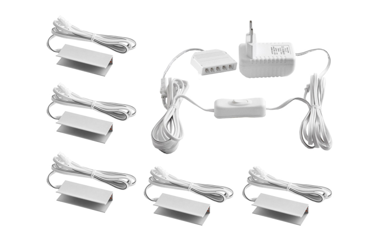 Set of aluminum LED clips for glass shelf lights with manual switch 5pcs 220V white light, white wire LEDUA