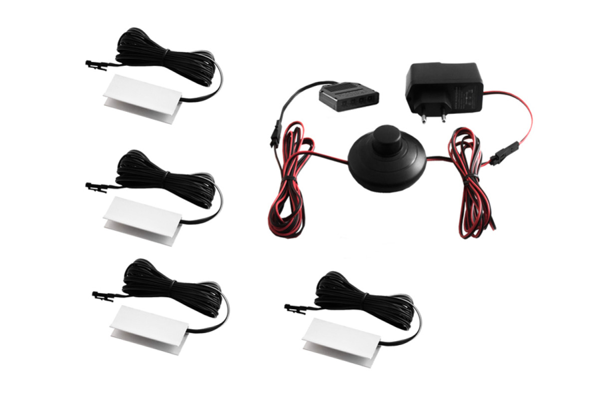 Set of aluminum LED clips for lighting glass shelves with foot switch 4pcs 220V blue light, black wire LEDUA