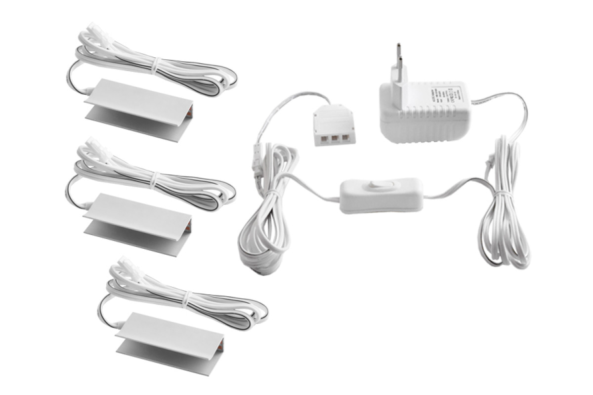 Set of aluminum LED clips for lighting glass shelves with manual switch 3pcs 220V white light, white wire LEDUA