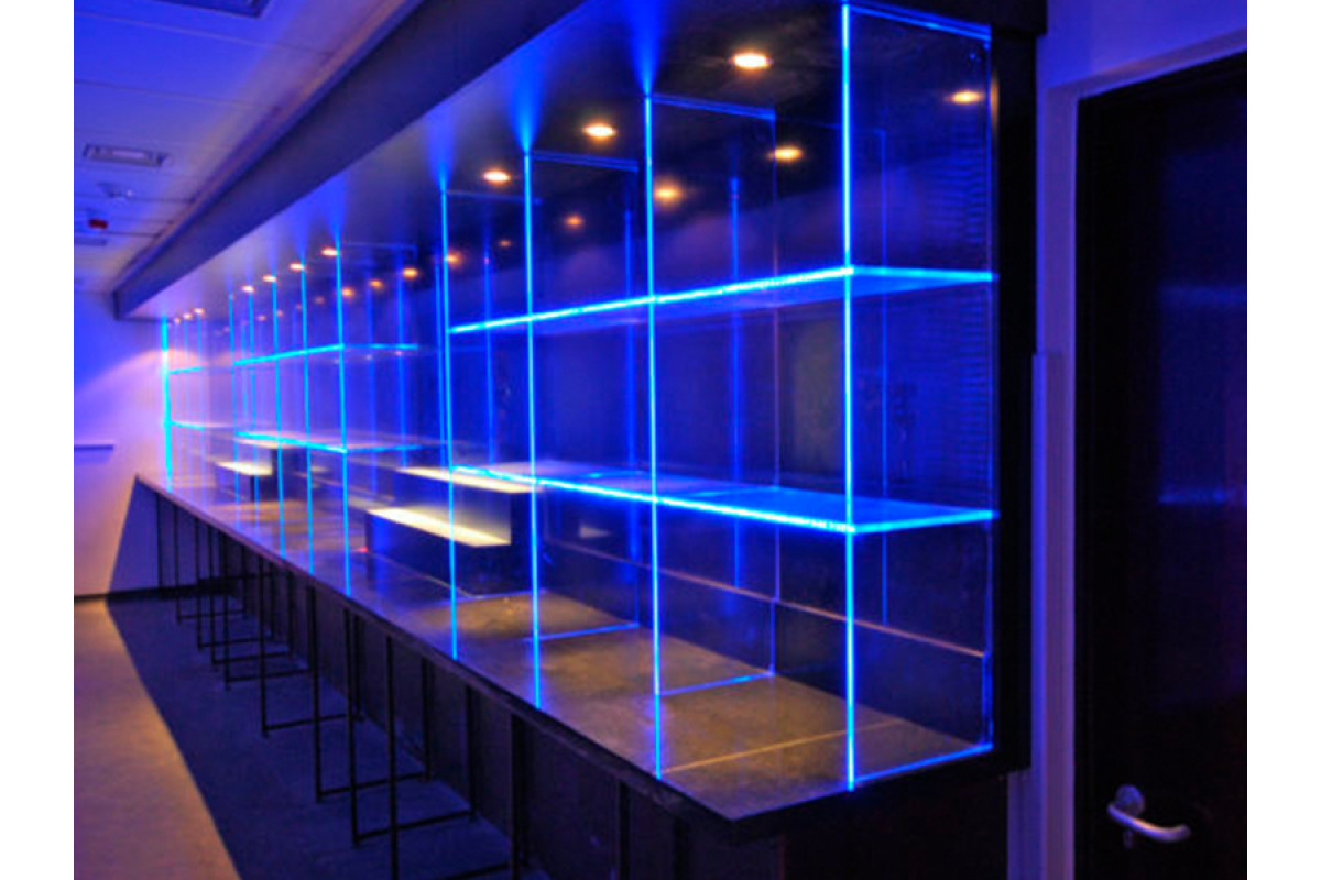 Set of aluminum LED clips for lighting glass shelves with manual switch 4pcs 220V blue light, white wire LEDUA