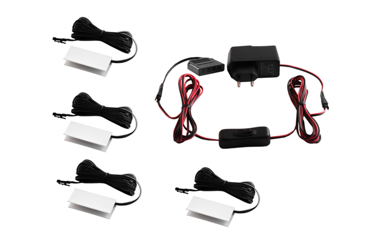 Set of aluminum LED clips for lighting glass shelves with manual switch 4pcs 220V neutral light, black wire LEDUA