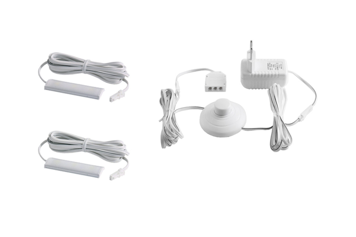 Set of LED lamps with foot switch for lighting furniture shelves 2pcs 220V blue light white wire LEDUA