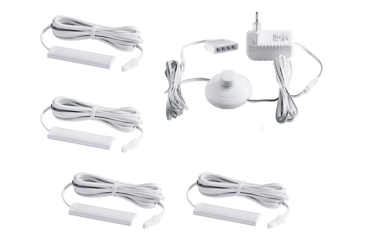 Set of LED lamps with foot switch for lighting furniture shelves 5pcs 220V blue light black wire LEDUA
