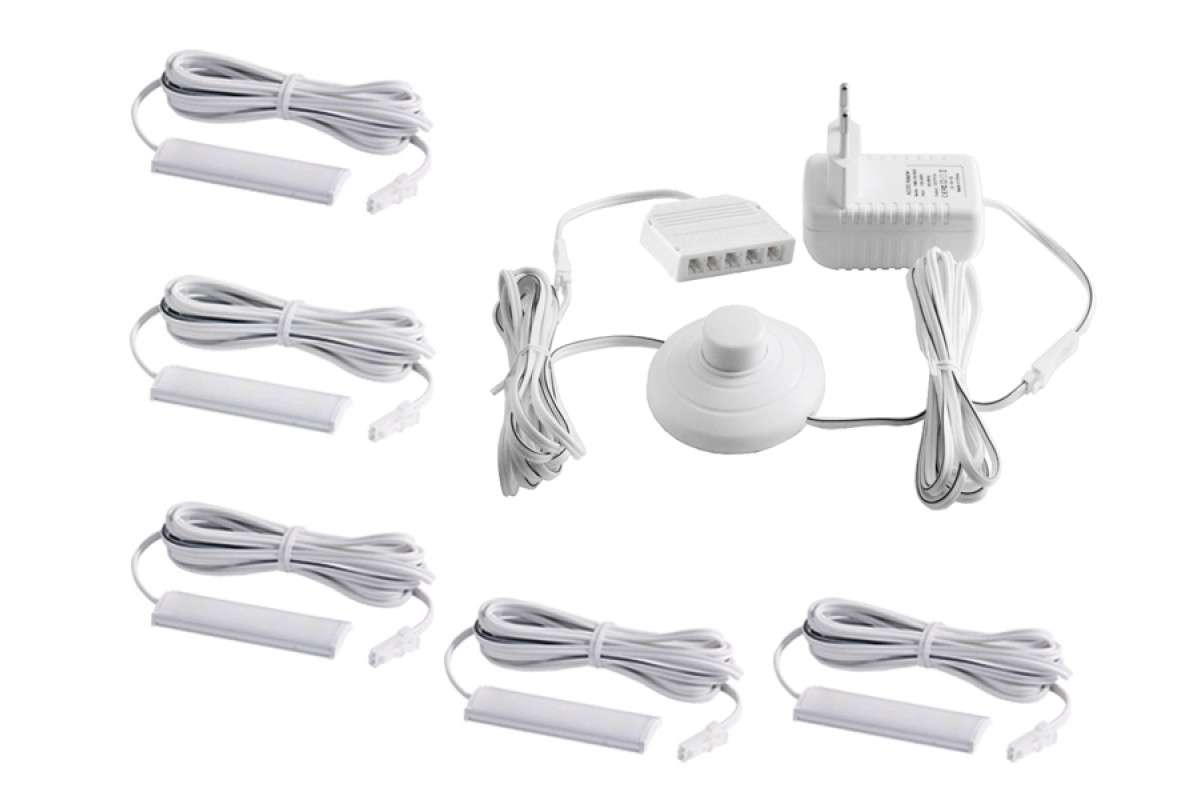 Set of LED lamps with foot switch for lighting furniture shelves 5pcs 220V white light black wire LEDUA