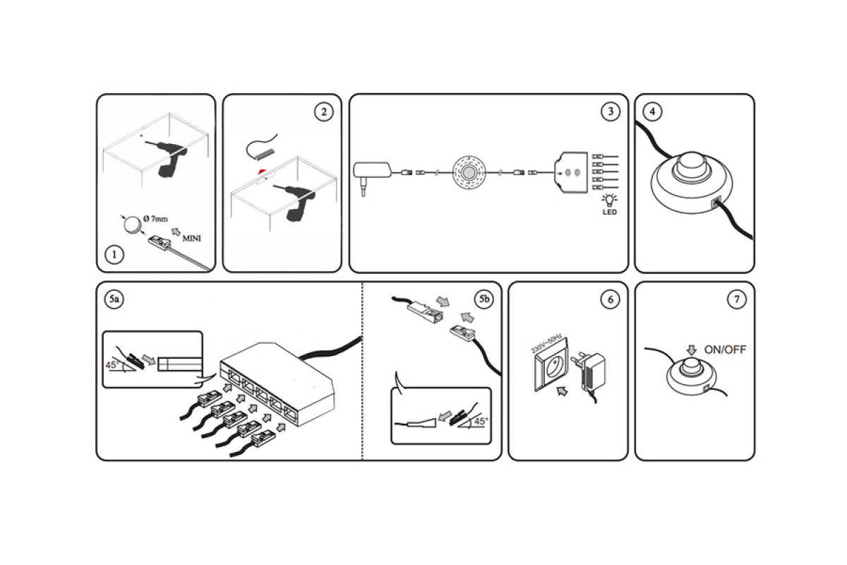 Set of LED lamps with foot switch for lighting furniture shelves 6pcs 220V white light white wire LEDUA