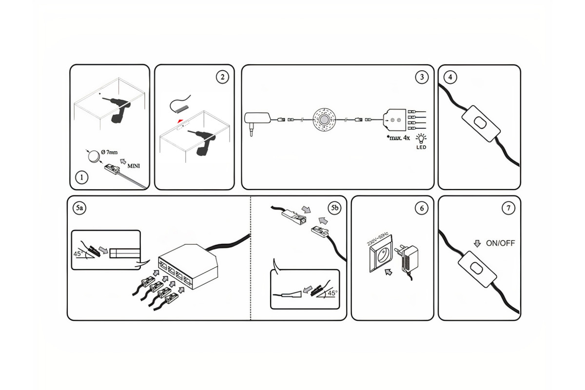 Set of LED lamps with manual switch for lighting furniture shelves 2pcs 220V white light white wire LEDUA