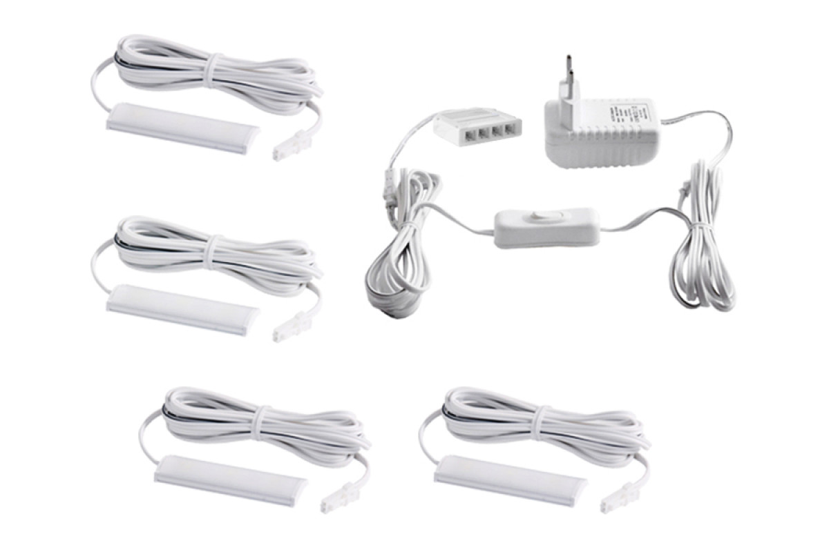 Set of LED lamps with manual switch for lighting furniture shelves 4pcs 220V blue light white wire LEDUA