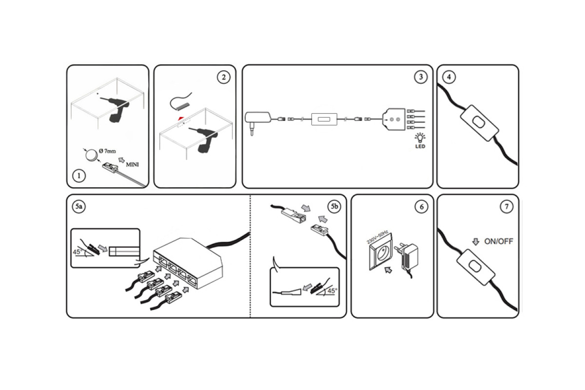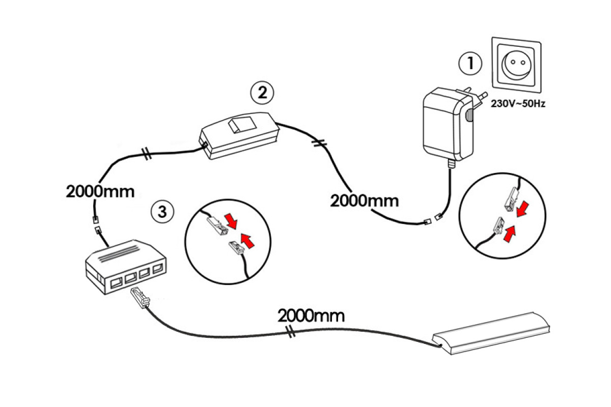 Set of LED lamps with manual switch for lighting furniture shelves 4pcs 220V white light black wire LEDUA