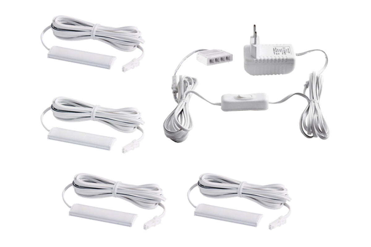 Set of LED lamps with manual switch for lighting furniture shelves 4pcs 220V white light white wire LEDUA