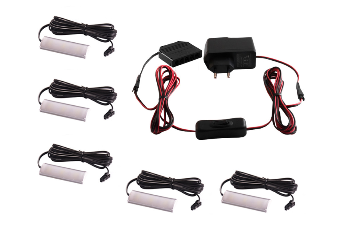 Set of LED lamps with manual switch for lighting furniture shelves 5pcs 220V blue light white wire LEDUA
