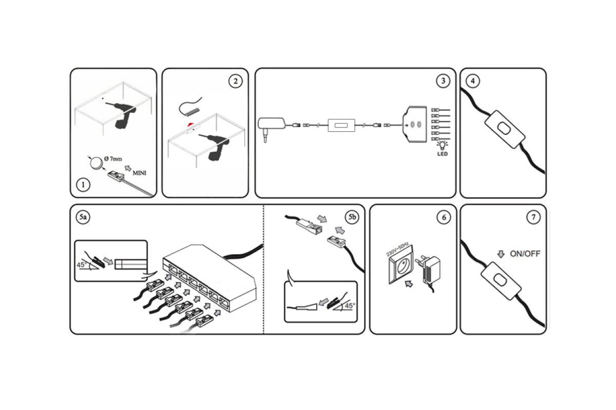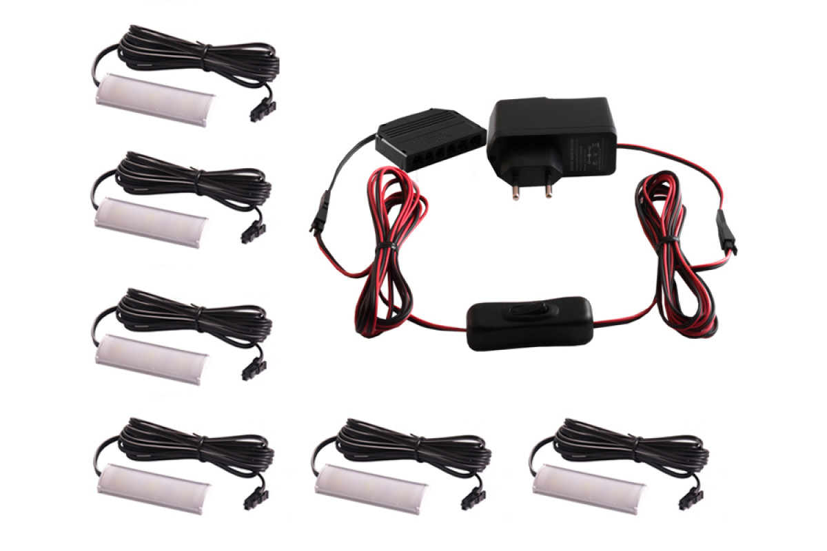Set of LED lamps with manual switch for lighting furniture shelves 5pcs 220V white light white wire LEDUA
