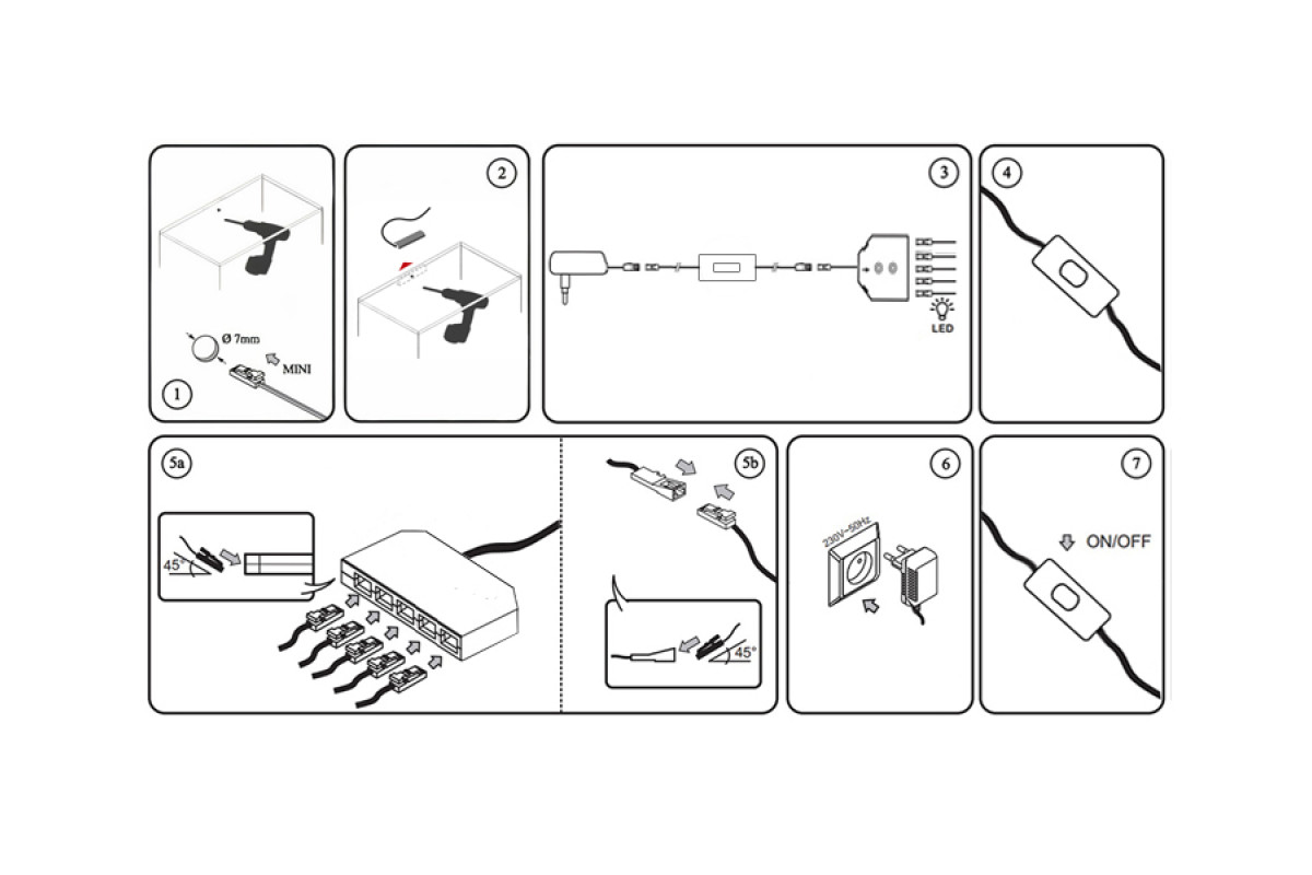 Set of LED lamps with manual switch for lighting furniture shelves 6pcs 220V blue light white wire LEDUA