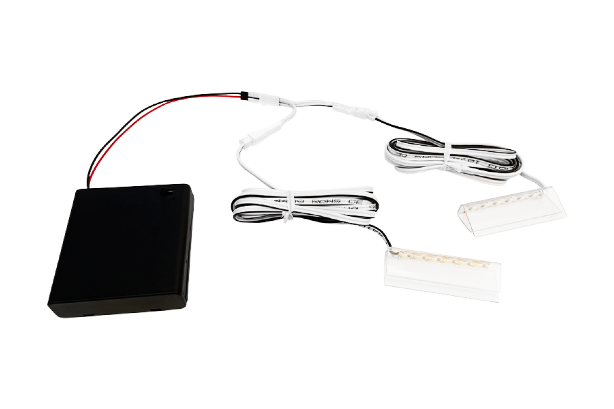 Set of LED plastic clips for lighting glass shelves 2pcs, AAx4 pcs (without batteries) 4500K, white wire LEDUA