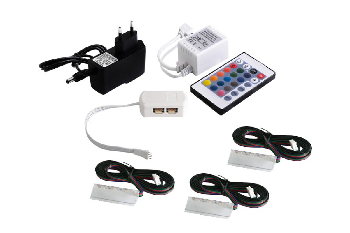 Set of LED plastic clips for lighting glass shelves 3pcs 220V 6 cm RGB LEDUA