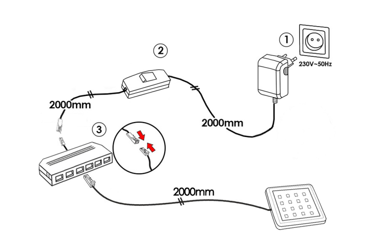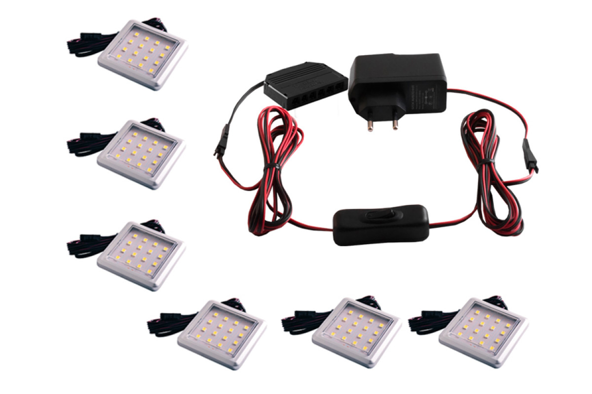Set of LED square lamps for furniture 6pcs 12W 220V white light manual switch LEDUA