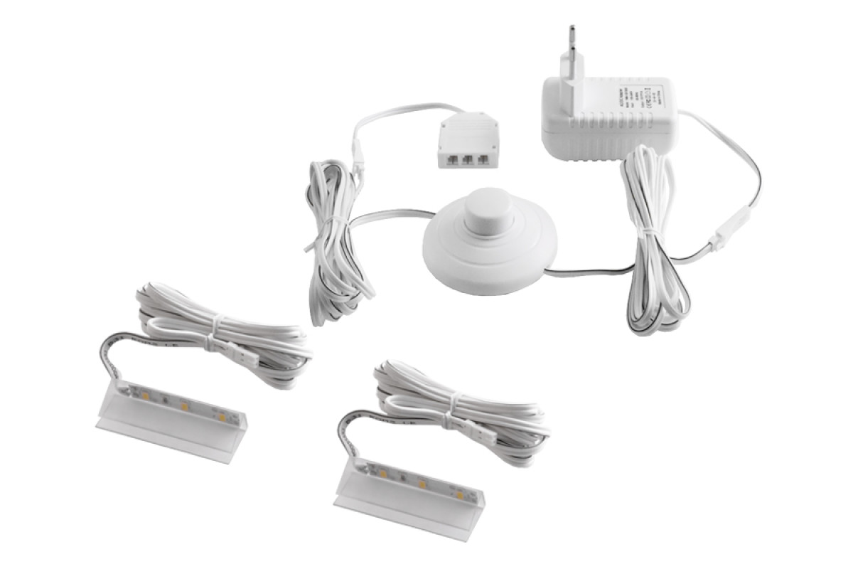 Set of plastic LED clips for lighting glass shelves with foot switch 2pcs 110-240VAC 6 cm blue light, white wire LEDUA