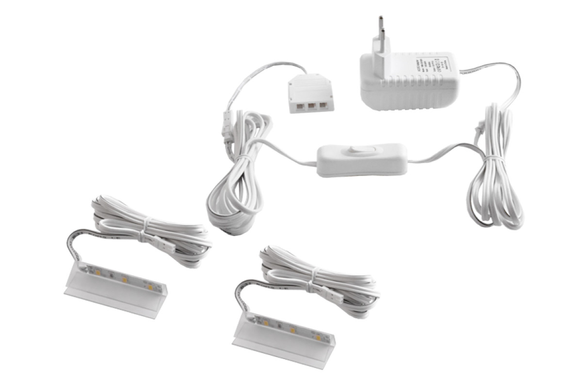 Set of plastic LED clips for lighting glass shelves with manual switch 2pcs 110-240VAC 6 cm blue light, white wire LEDUA