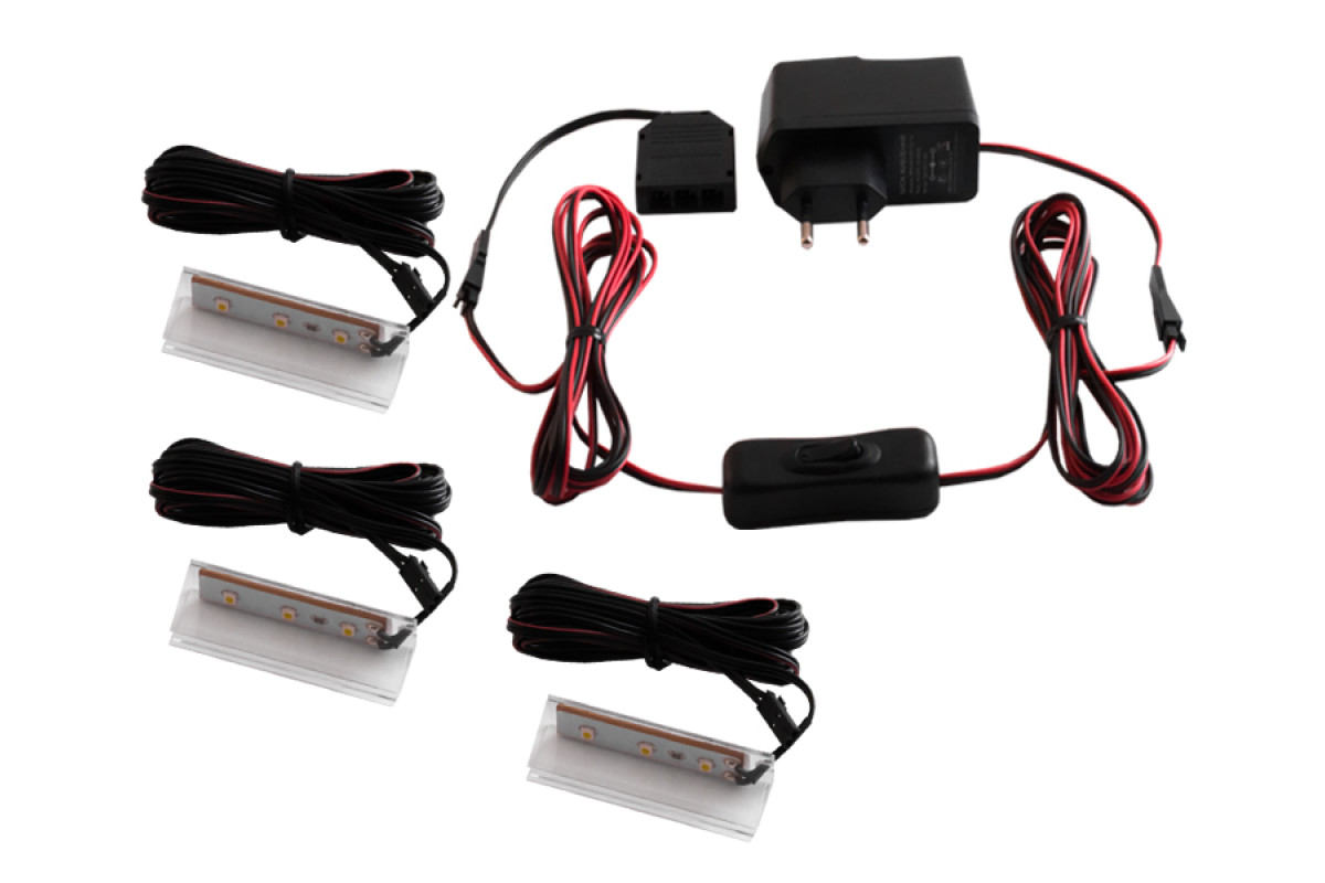 Set of plastic LED clips for lighting glass shelves with manual switch 3pcs 110-240VAC 6 cm white light, black wire LEDUA